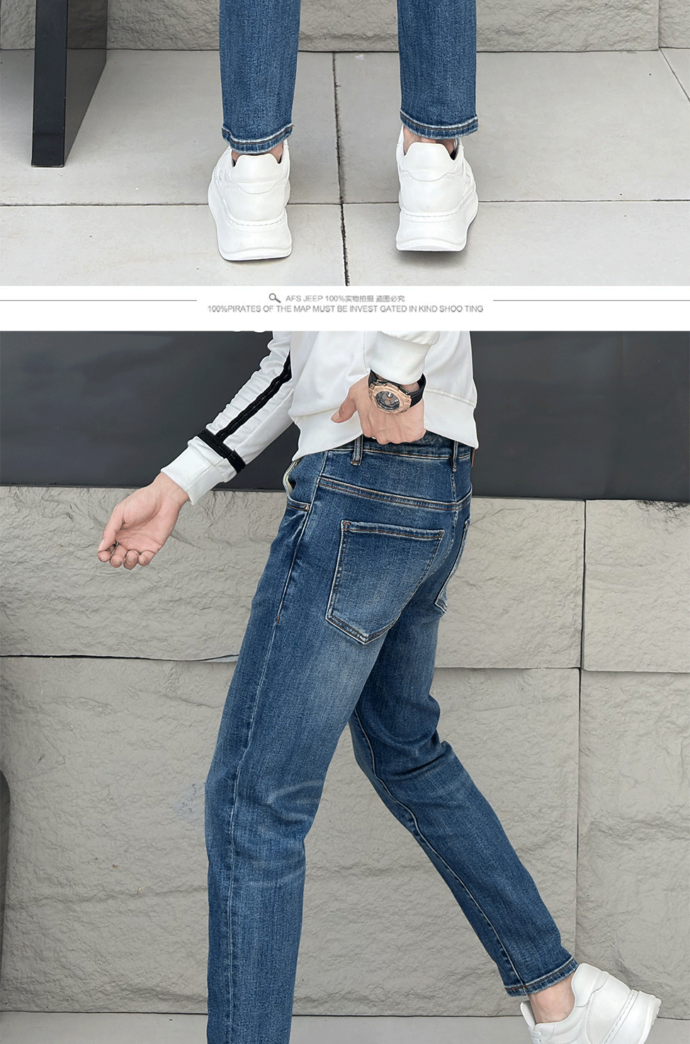 海外貿易の欧州製秋冬用厚手高級デニムパンツ メンズ ライトラグジュアリー カジュアル スキニーパンツ 多用途 かっこいい おしゃれ ファッションブランド