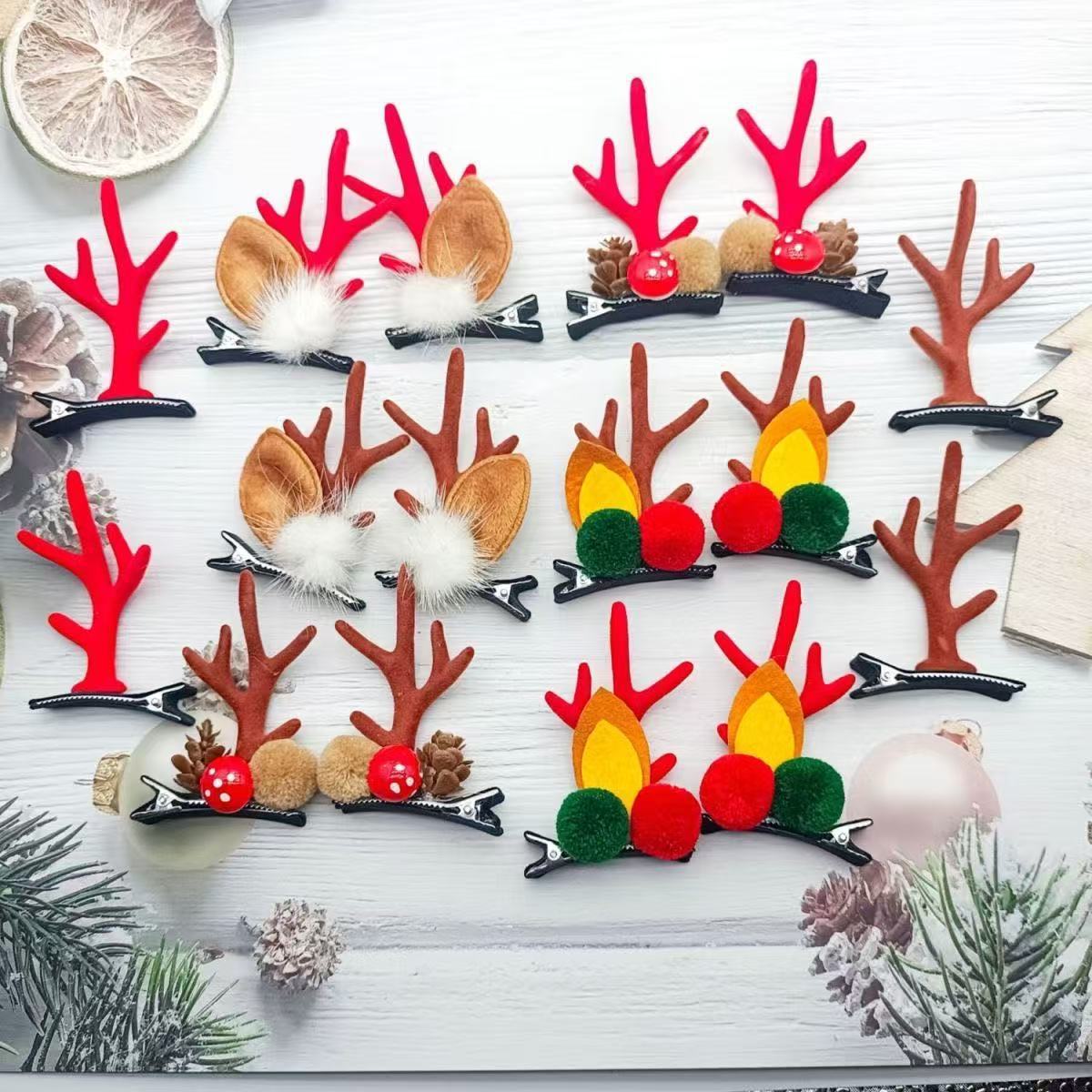 圣诞节头饰鹿角发夹女侧边刘海夹发卡森林系儿童麋鹿夹子发箍饰品