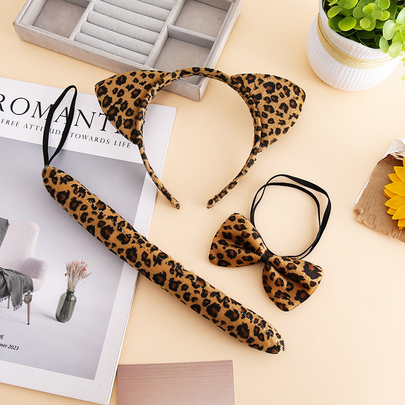 卡通豹纹发箍头饰毛绒猫耳朵发箍动物耳朵发箍万圣节舞会节日发箍