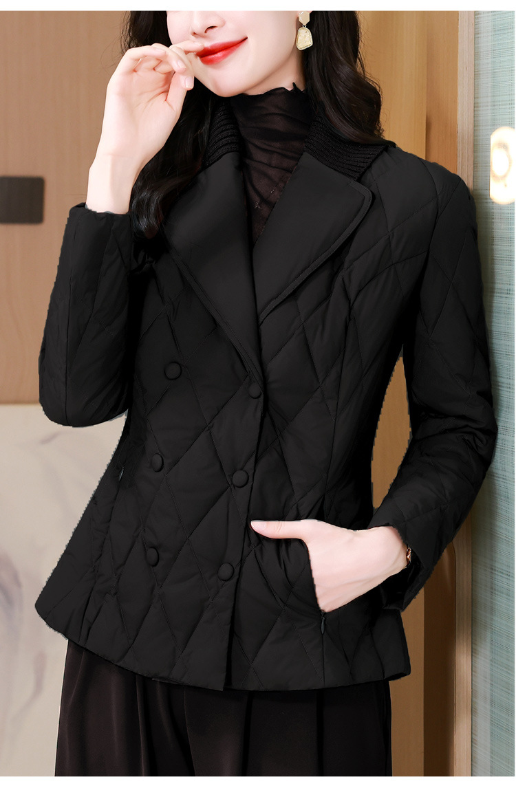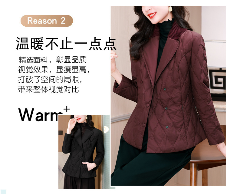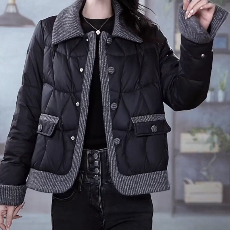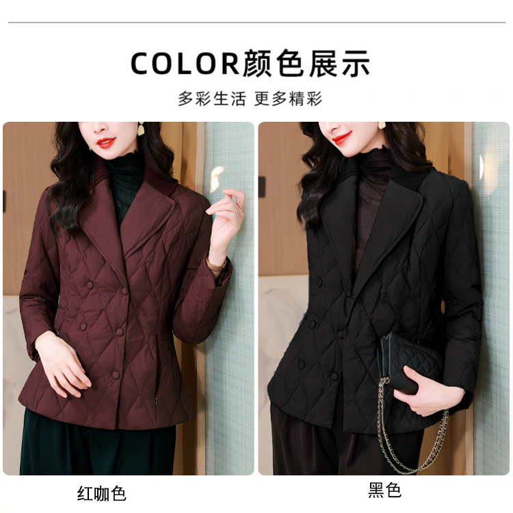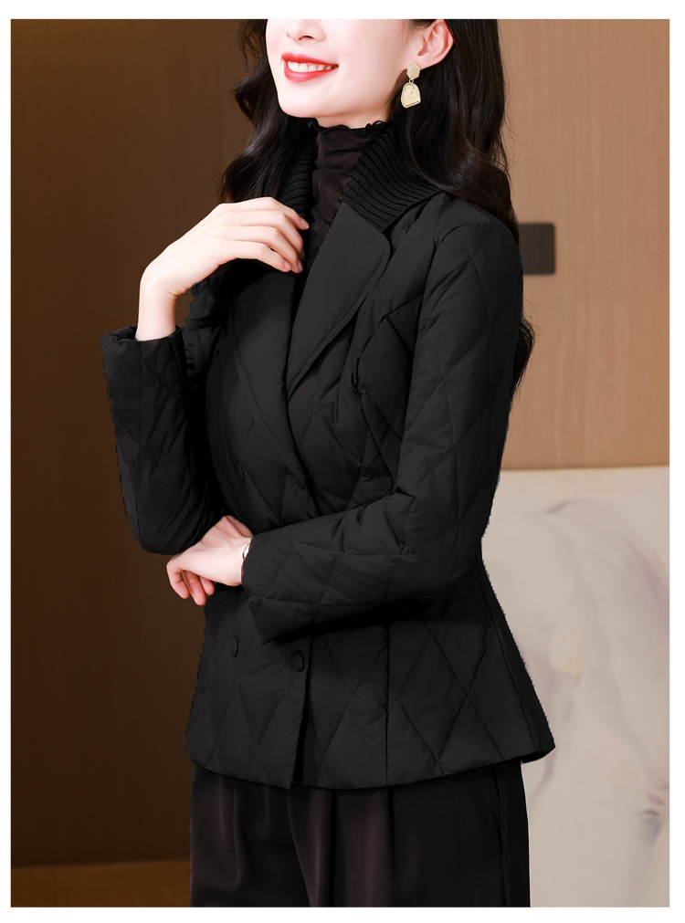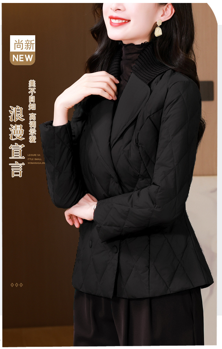 锦1657轻薄羽绒棉服女短款外套针织拼接西装领设计感显瘦保暖棉服