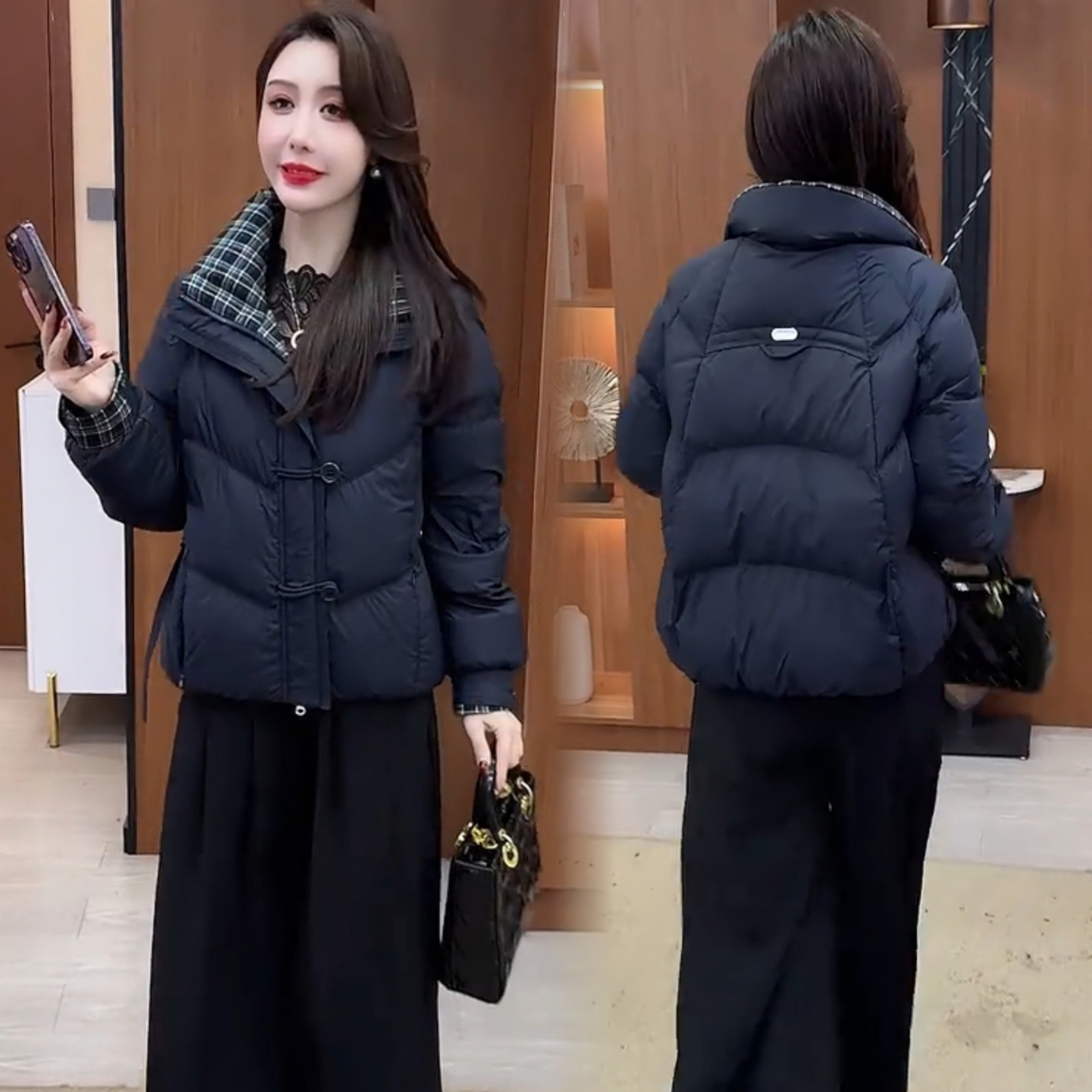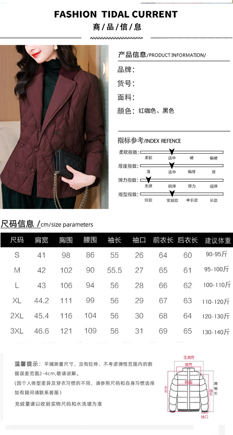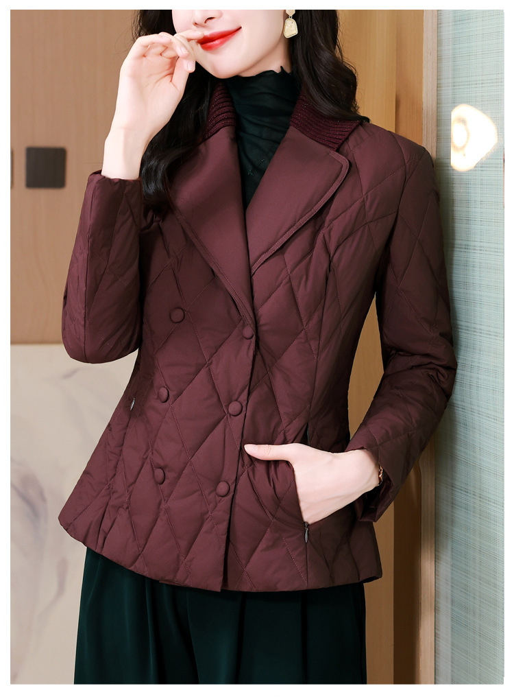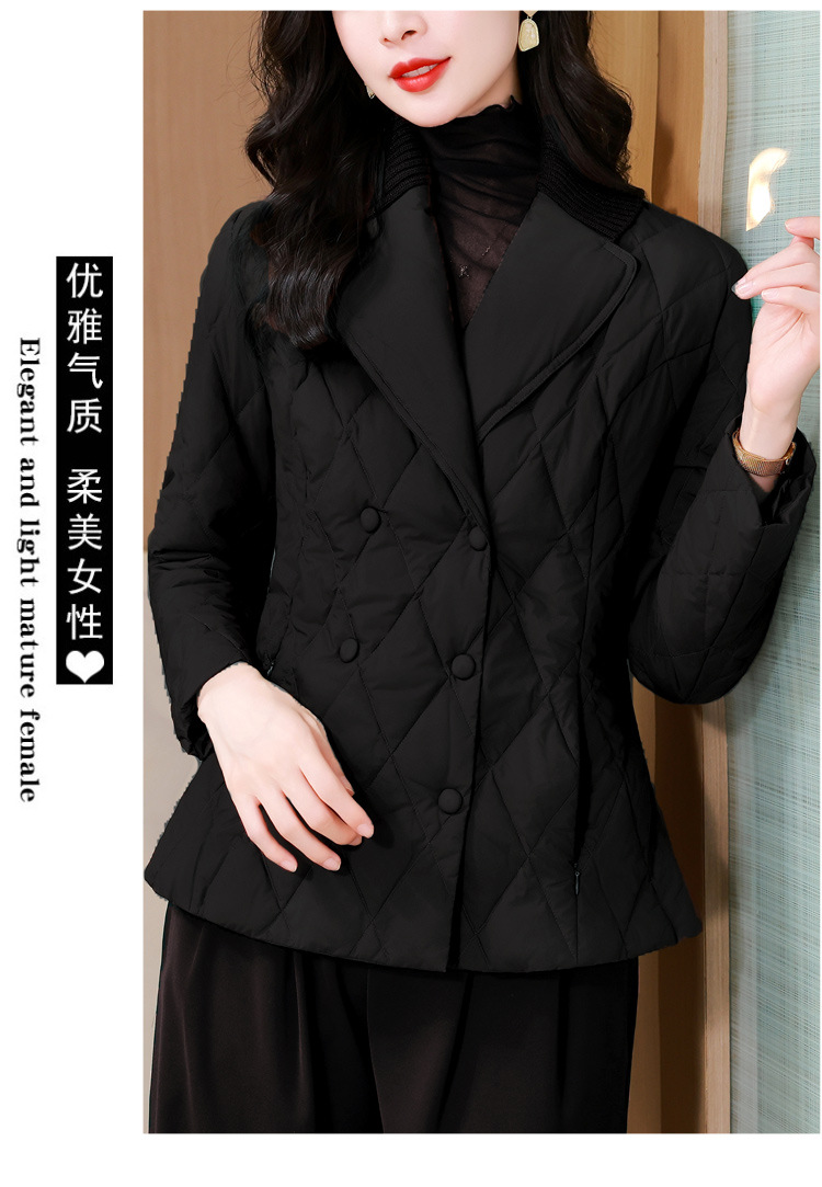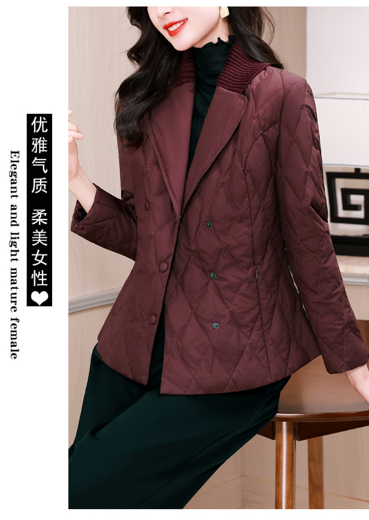 锦1657轻薄羽绒棉服女短款外套针织拼接西装领设计感显瘦保暖棉服