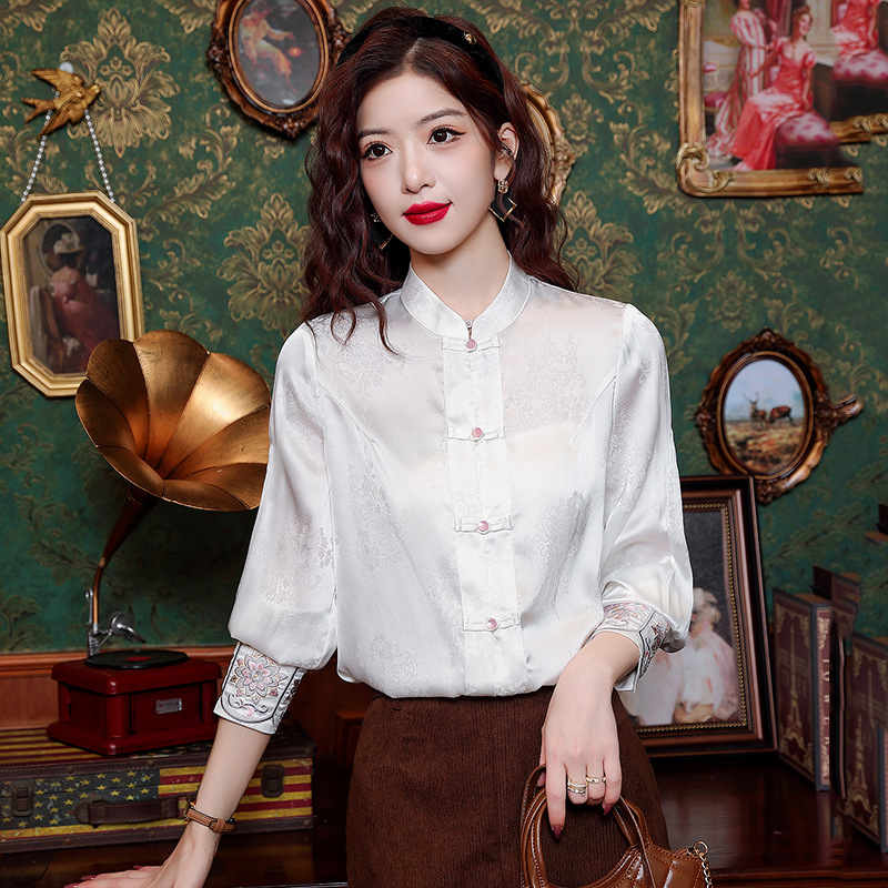 ニ1769 国風2025新作 中華風重刺繍袖口付きスタンドカラー長袖シャツ レディース 多用途 若見えトップス