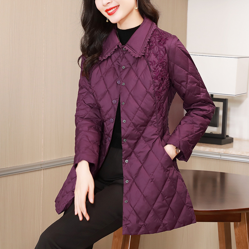 中国風刺繍ダウン綿服女性新中国式ミディアムロングスリム保温綿入れコート綿服