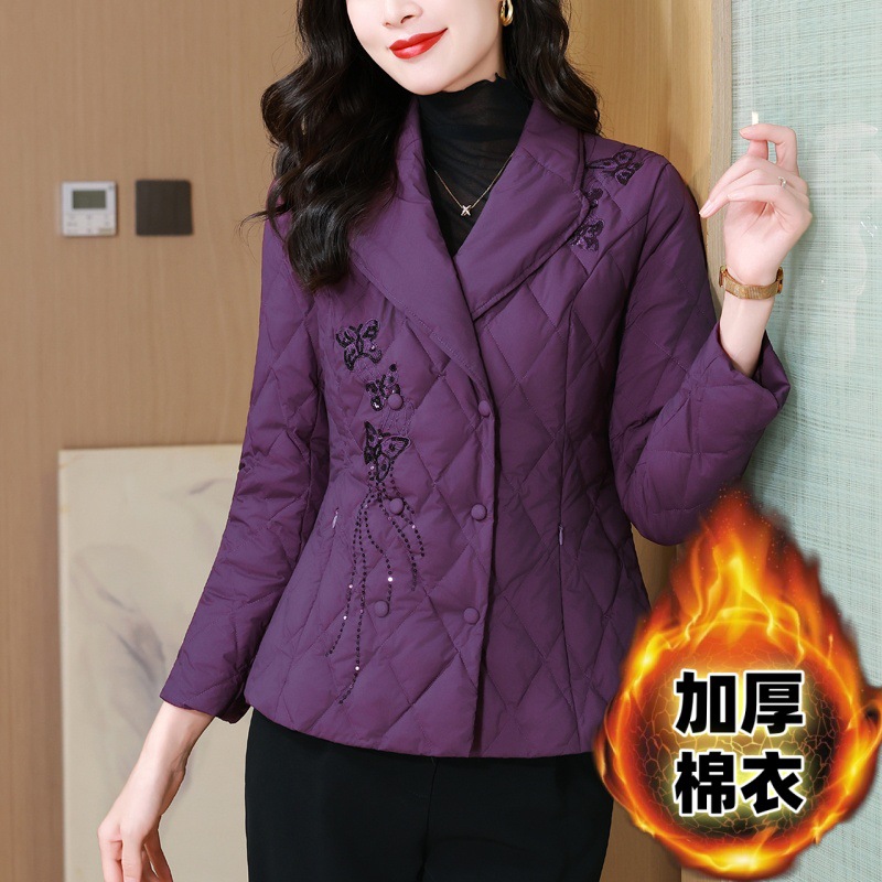 秋冬加棉外套2025新款翻领女冬装羽绒棉服时尚轻薄款棉衣W5888