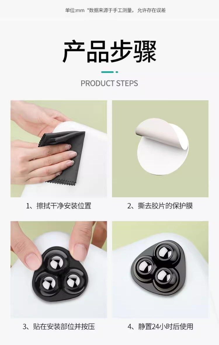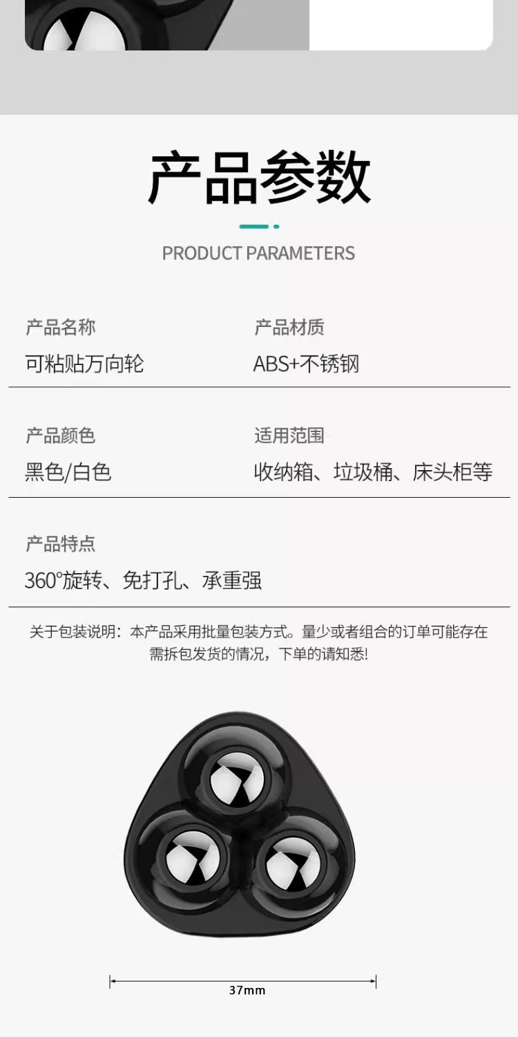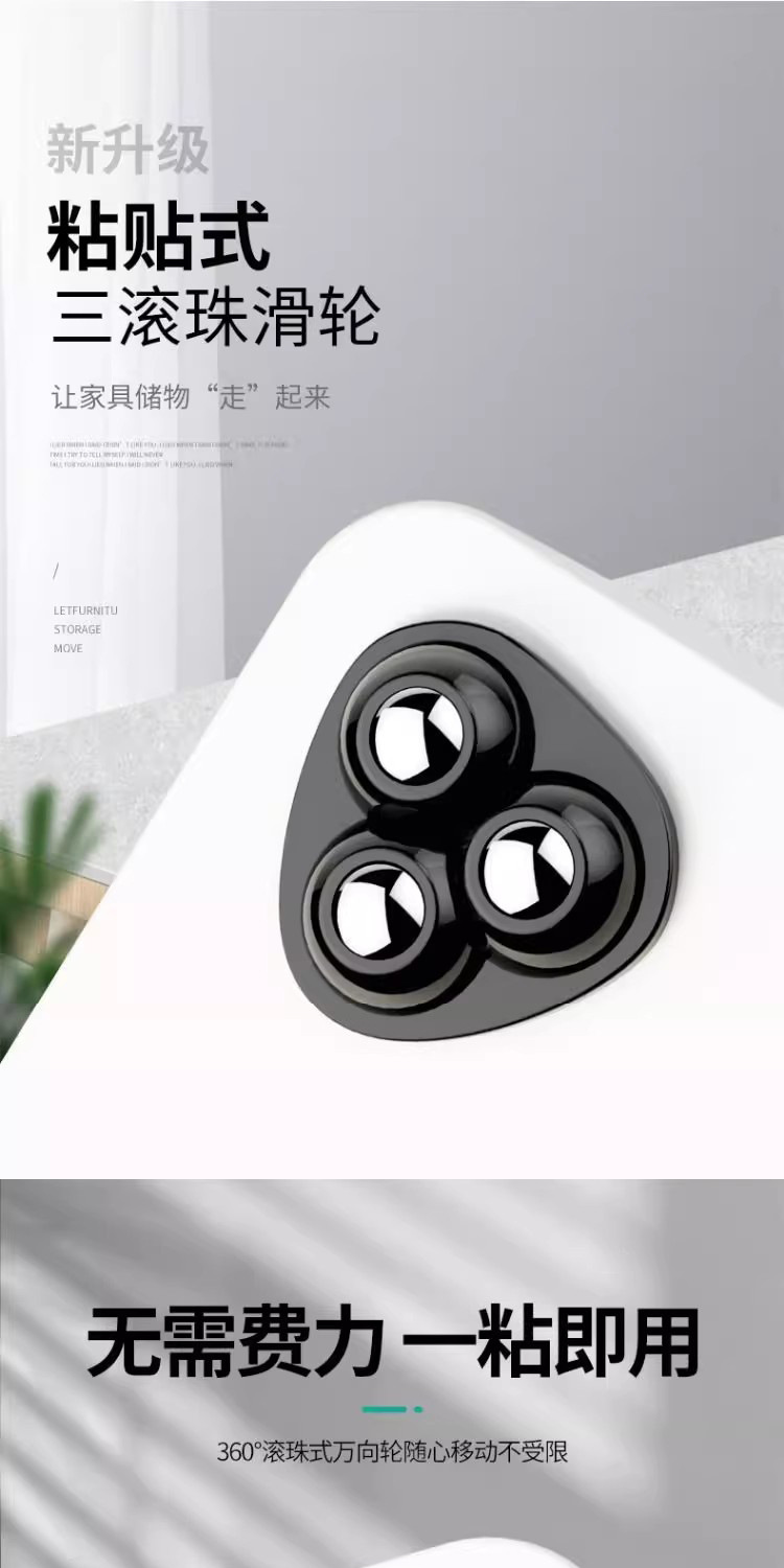 新款粘贴万向轮三滚珠免打孔静音耐磨承重家用五金件360度小滑轮