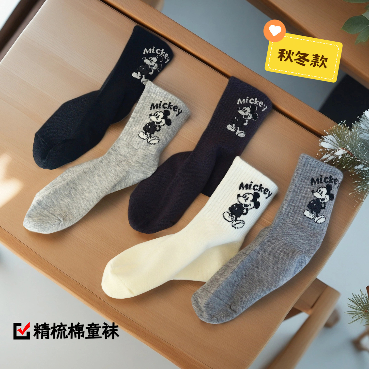 爱嘀嗒儿童袜子棉的秋冬新款卡通米奇男童女童学生中筒袜厂家批发