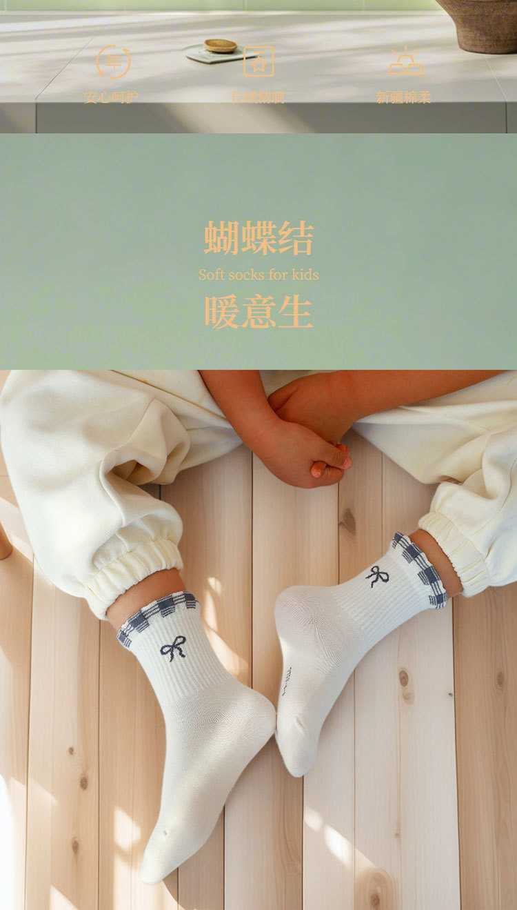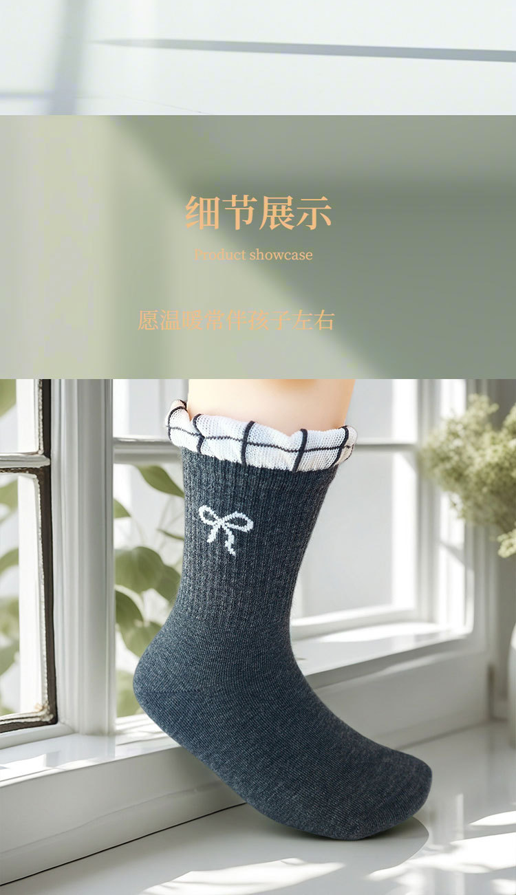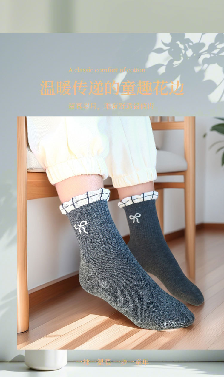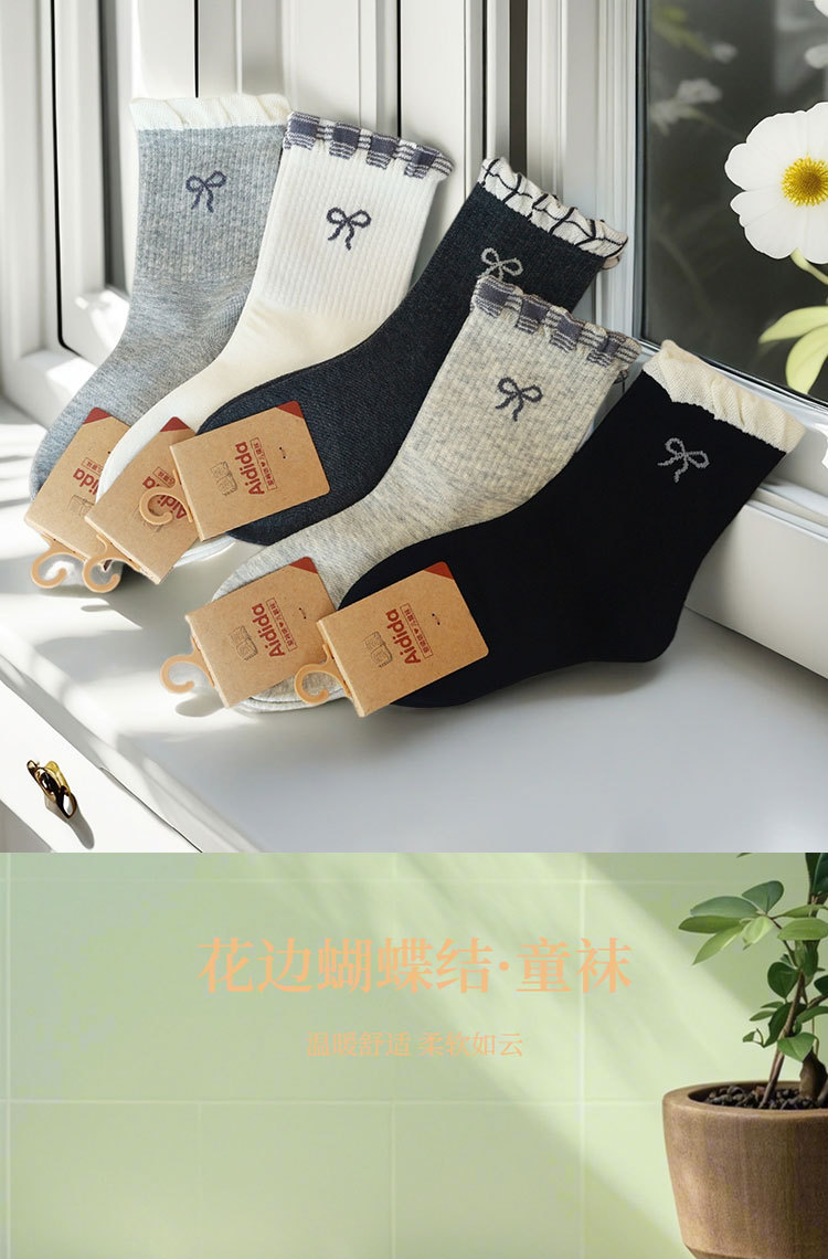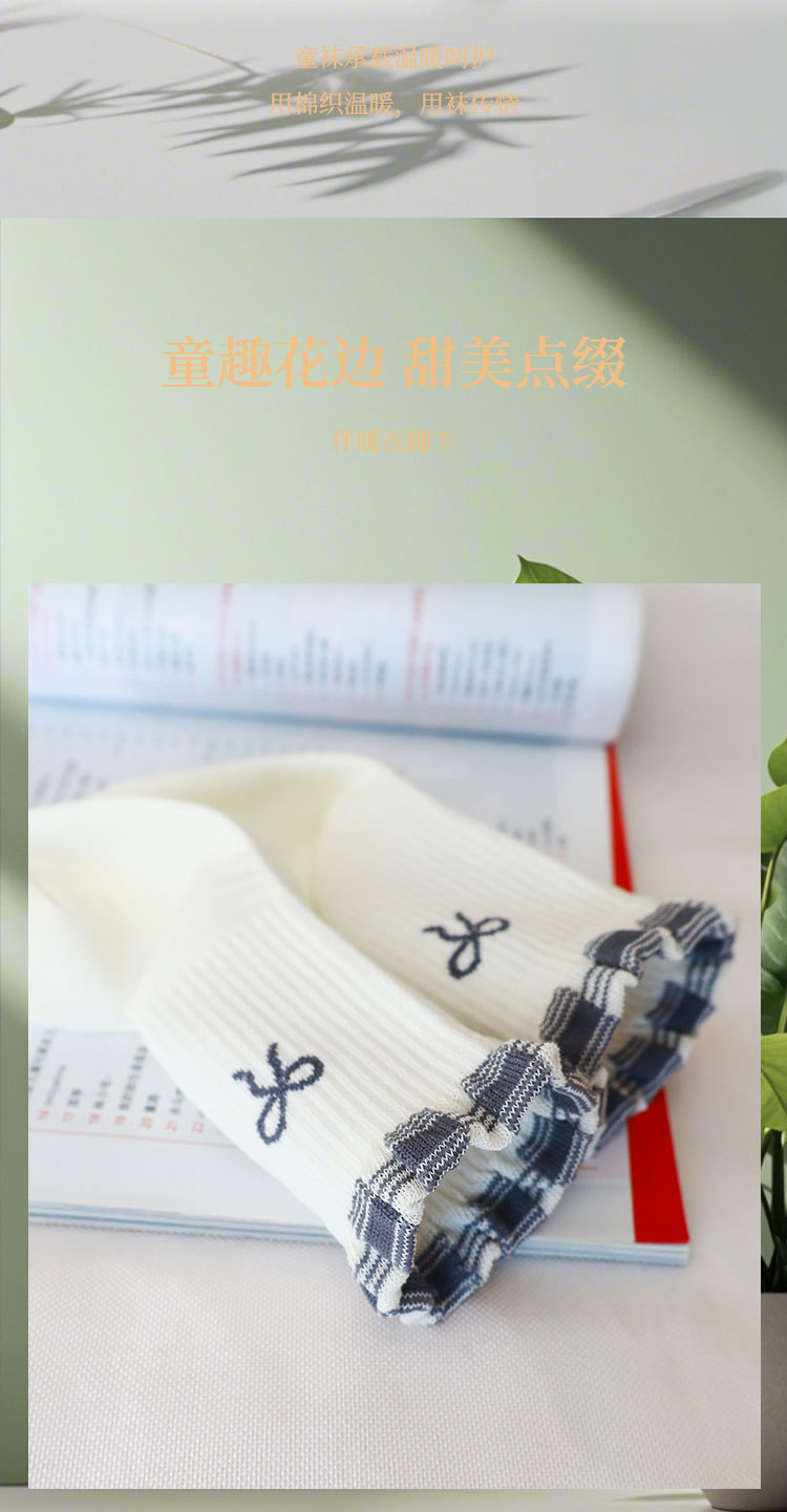批发爱嘀嗒秋冬季花边蝴蝶节女童精梳棉学生宝宝潮流保暖中筒袜