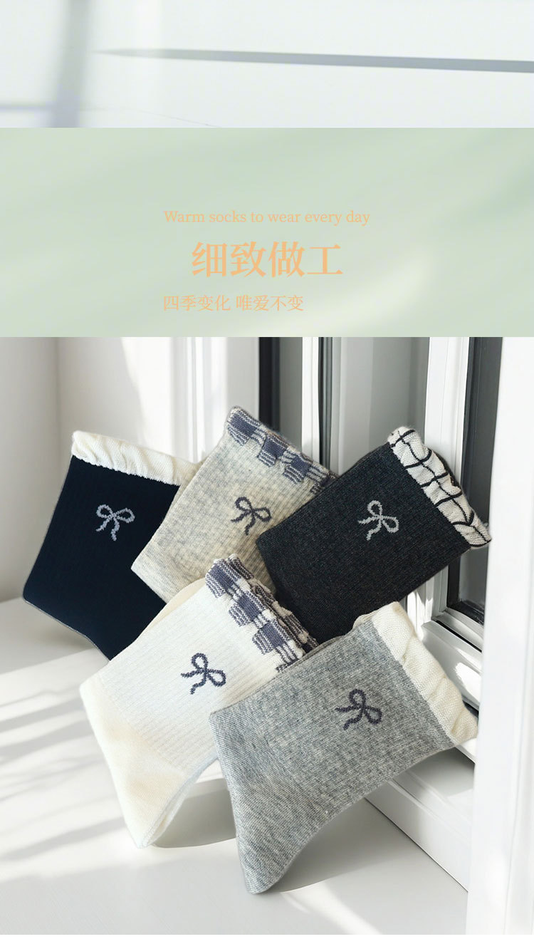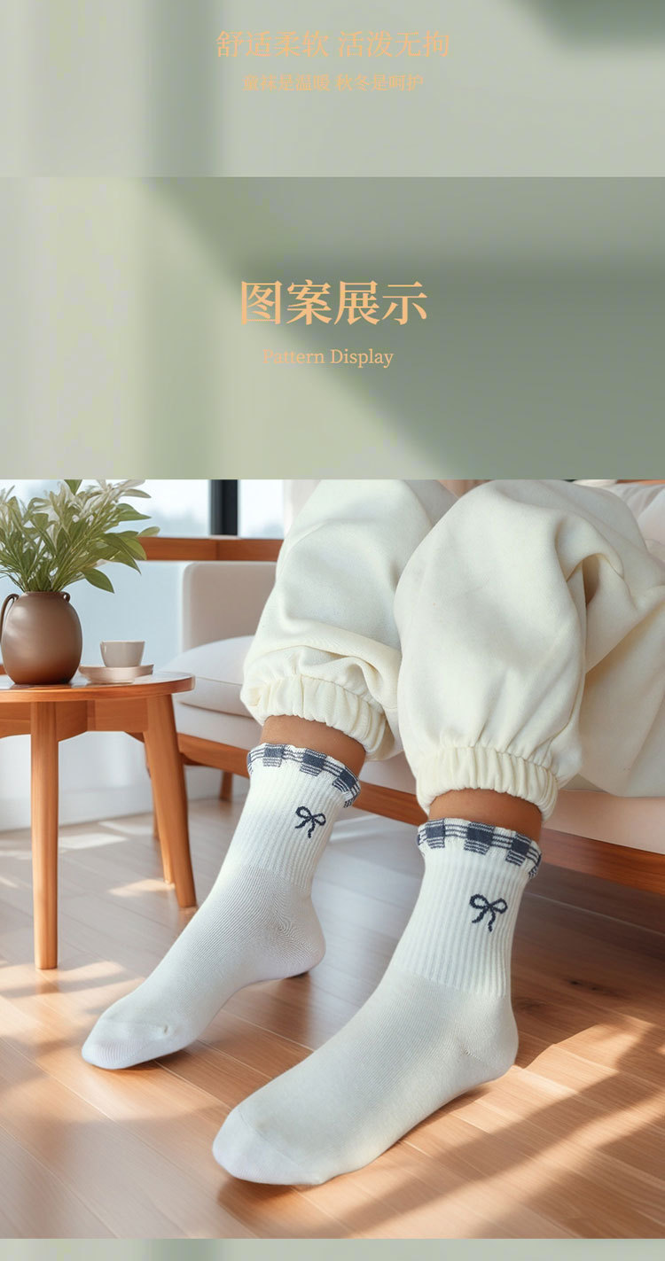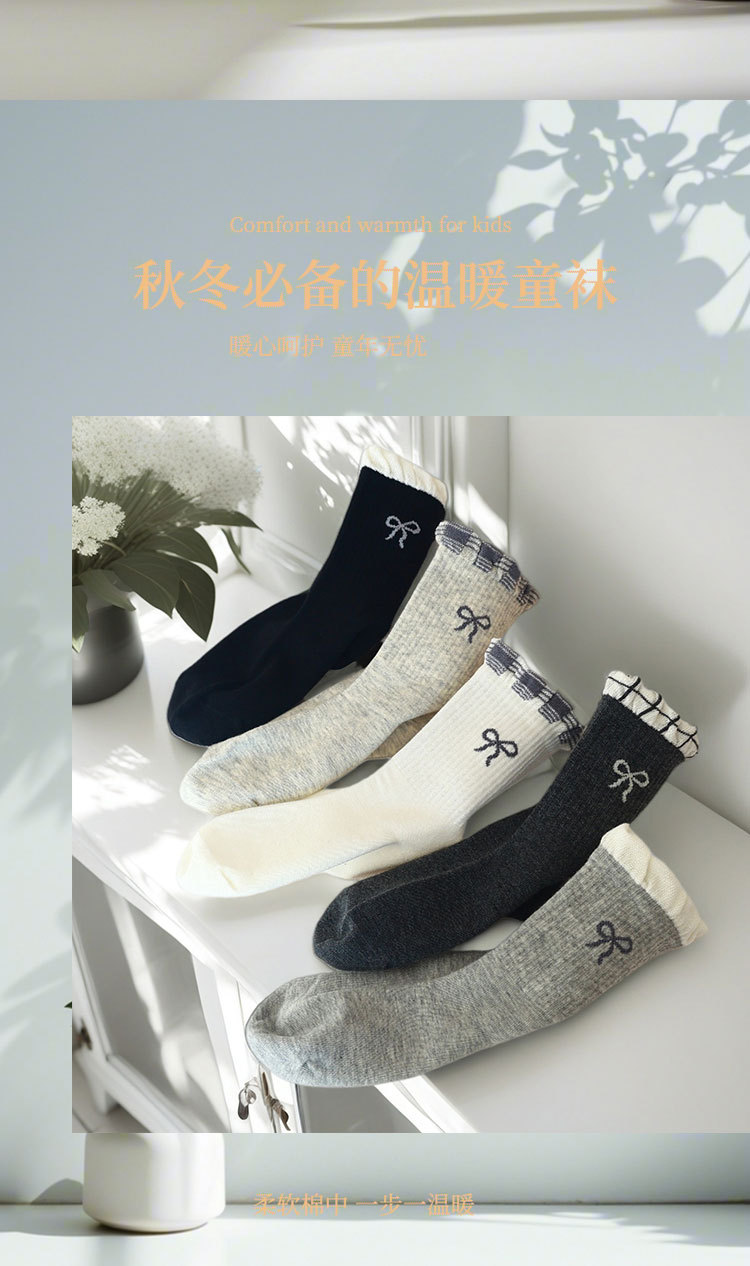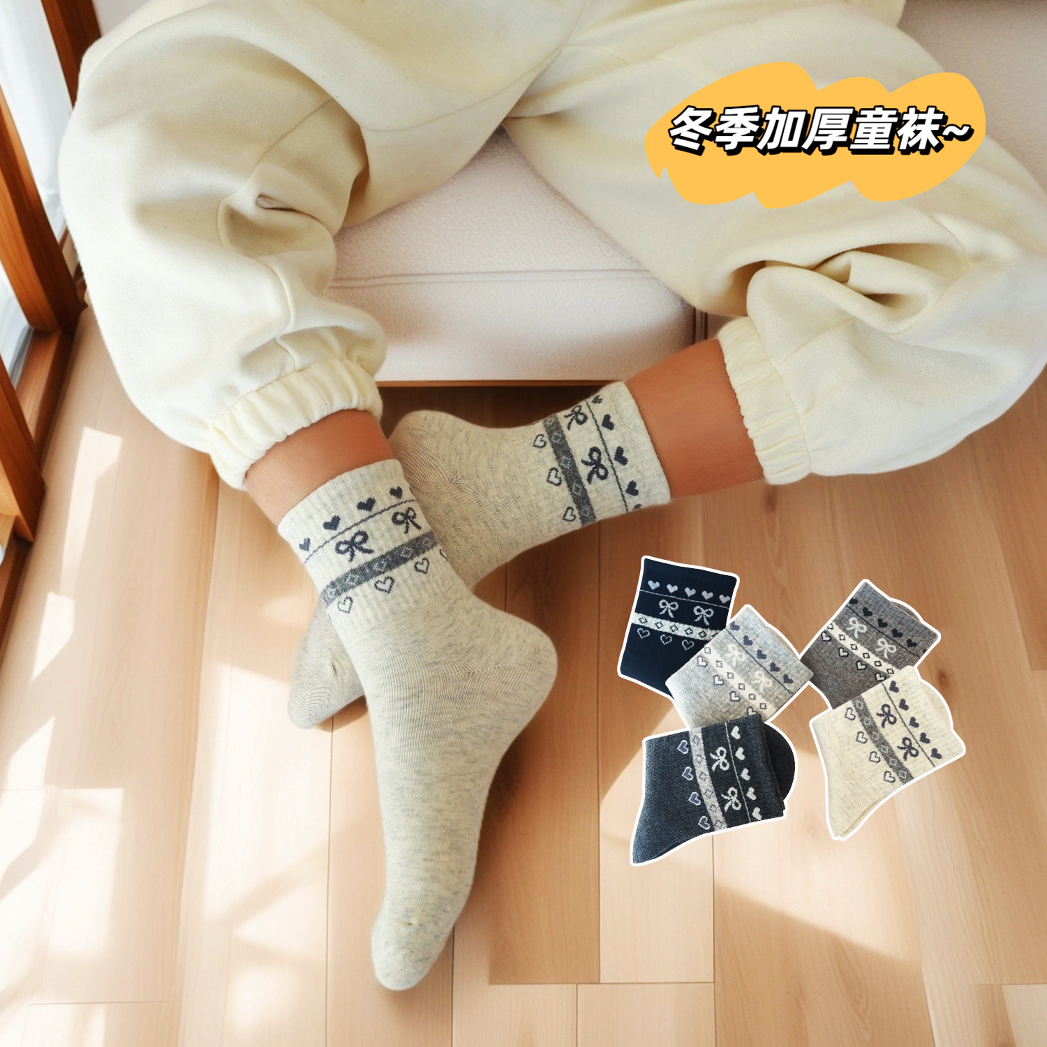 儿童冬季袜子加厚精梳棉蝴蝶结深色卡通女童学生宝宝保暖中筒袜