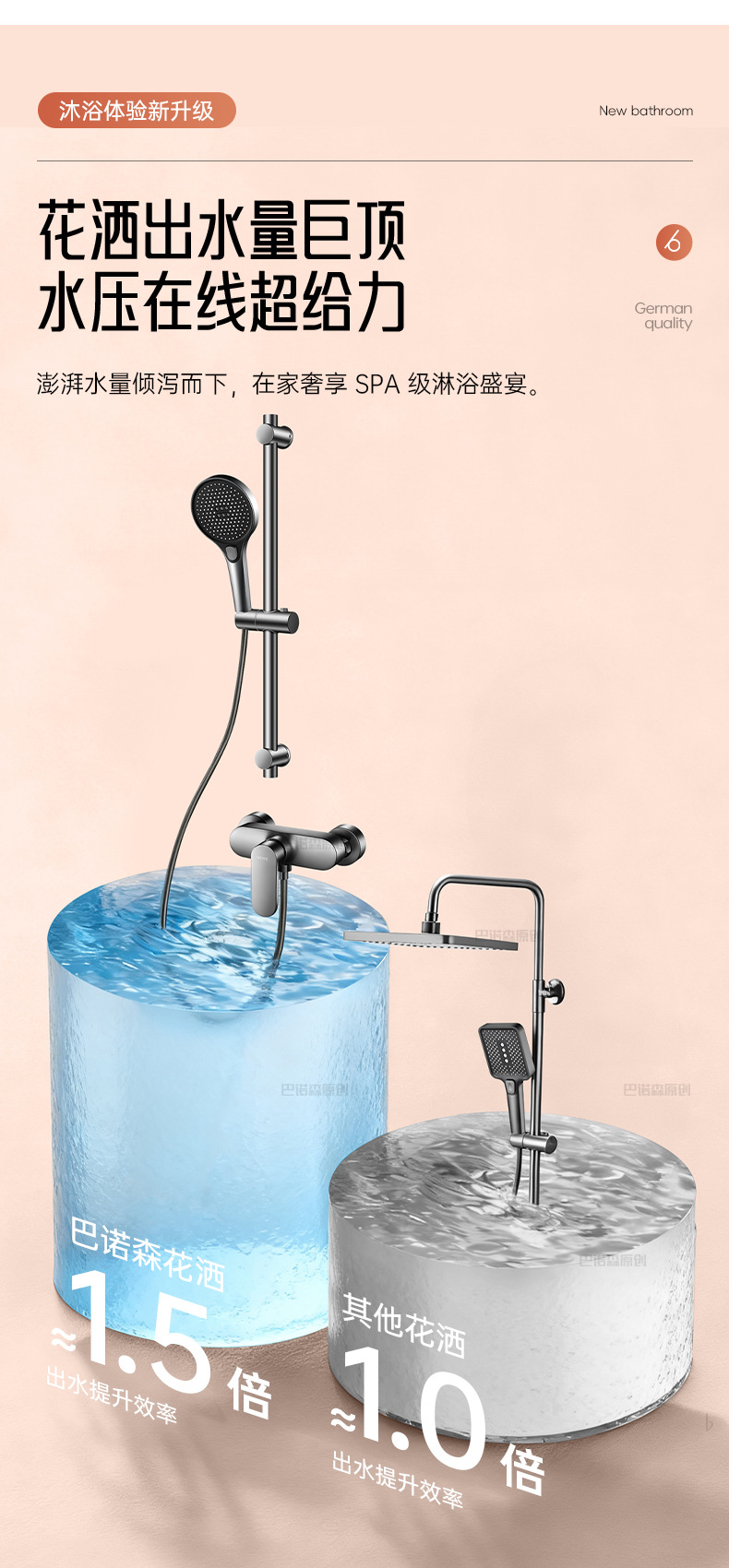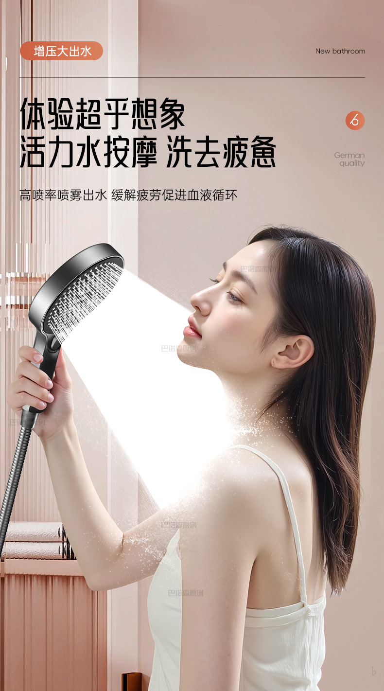 ドイツ増圧シャワーヘッド超強力ダブルタービン加圧大出水量浴室入浴シャワーヘッド浴覇セット