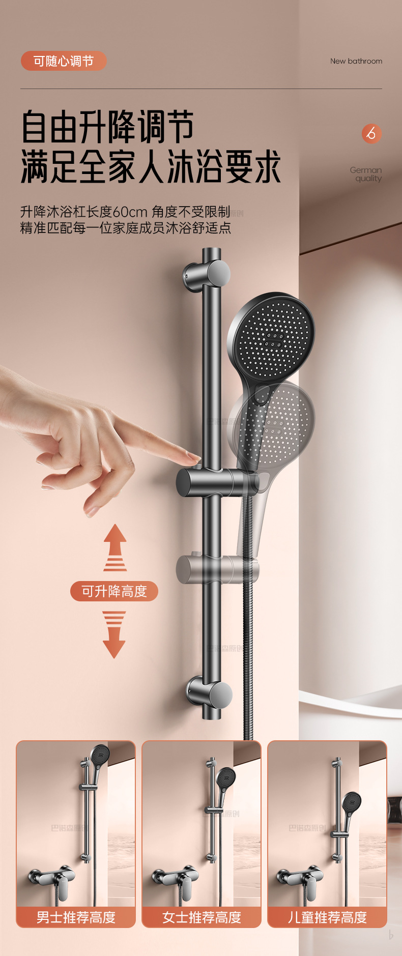 花洒支架类型 可旋转带升降