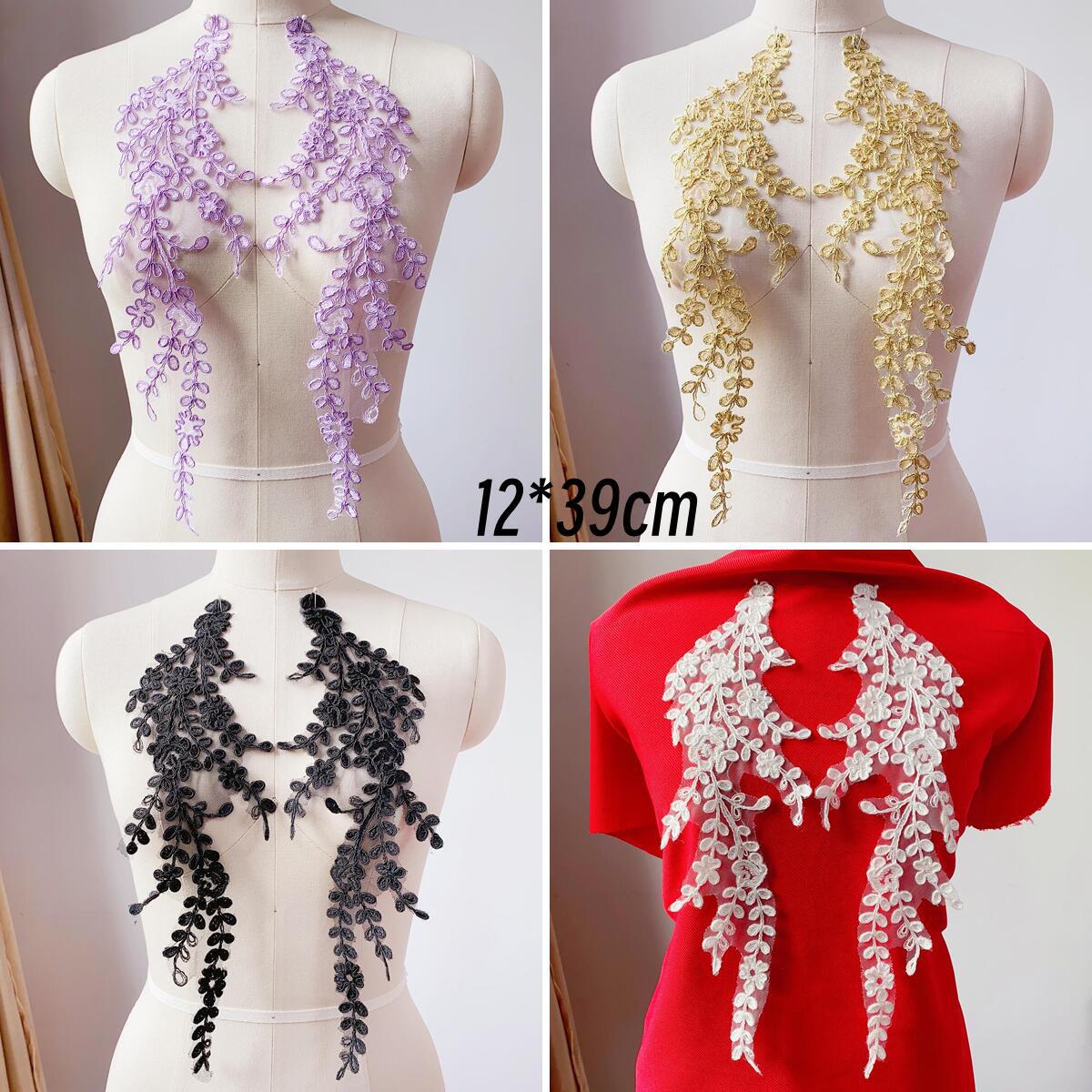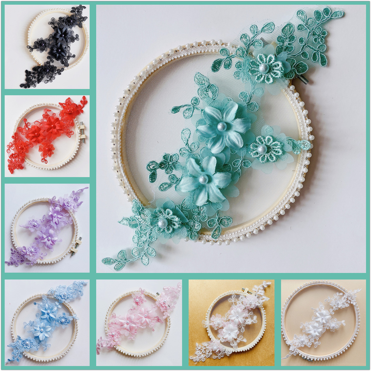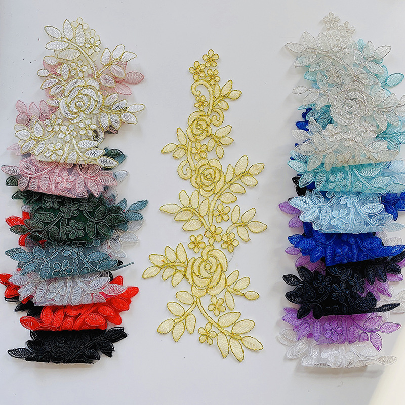 刺繍入りカラフルな車骨レースの花柄アップリケ、ウェディングドレス用アクセサリー