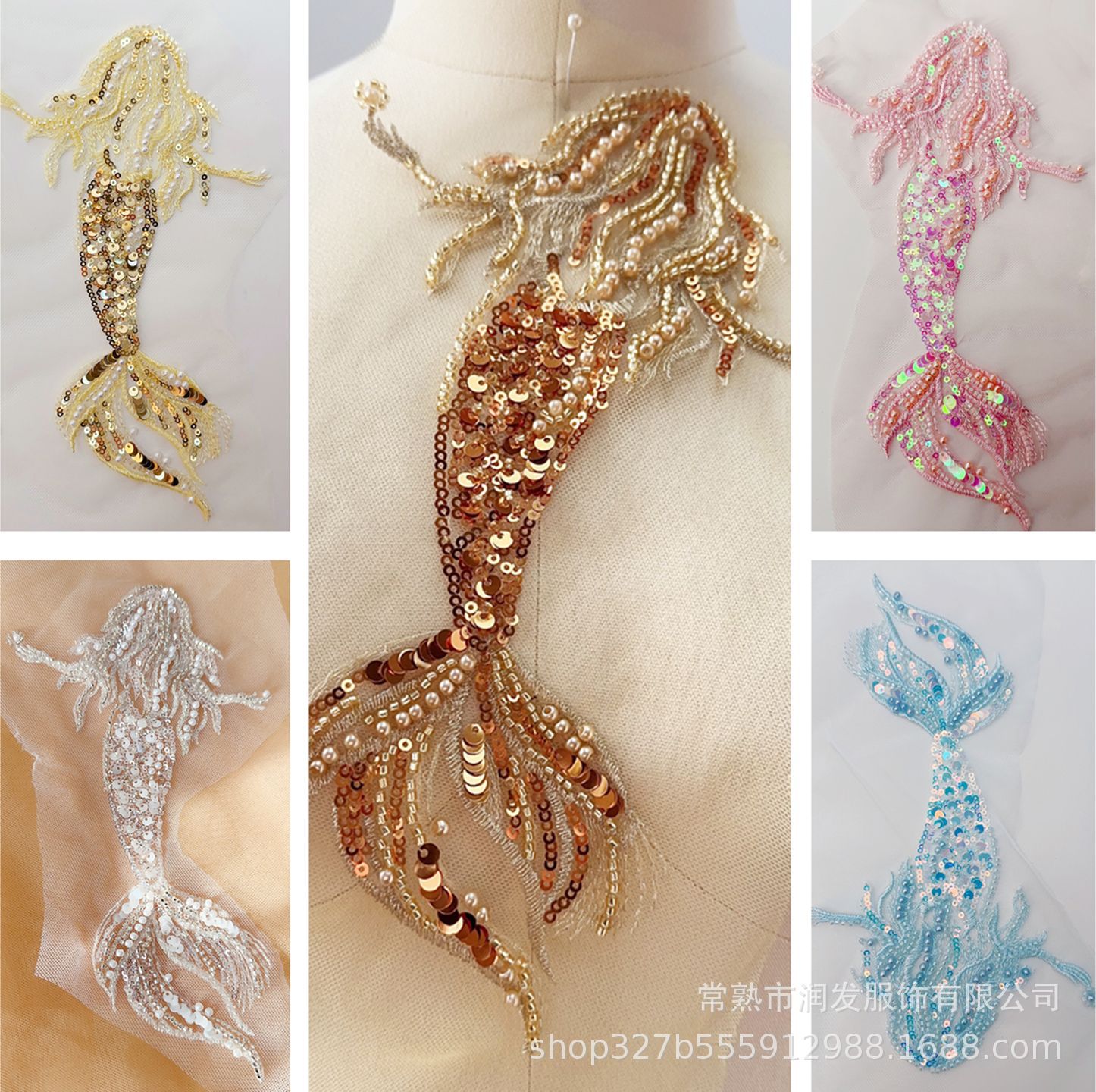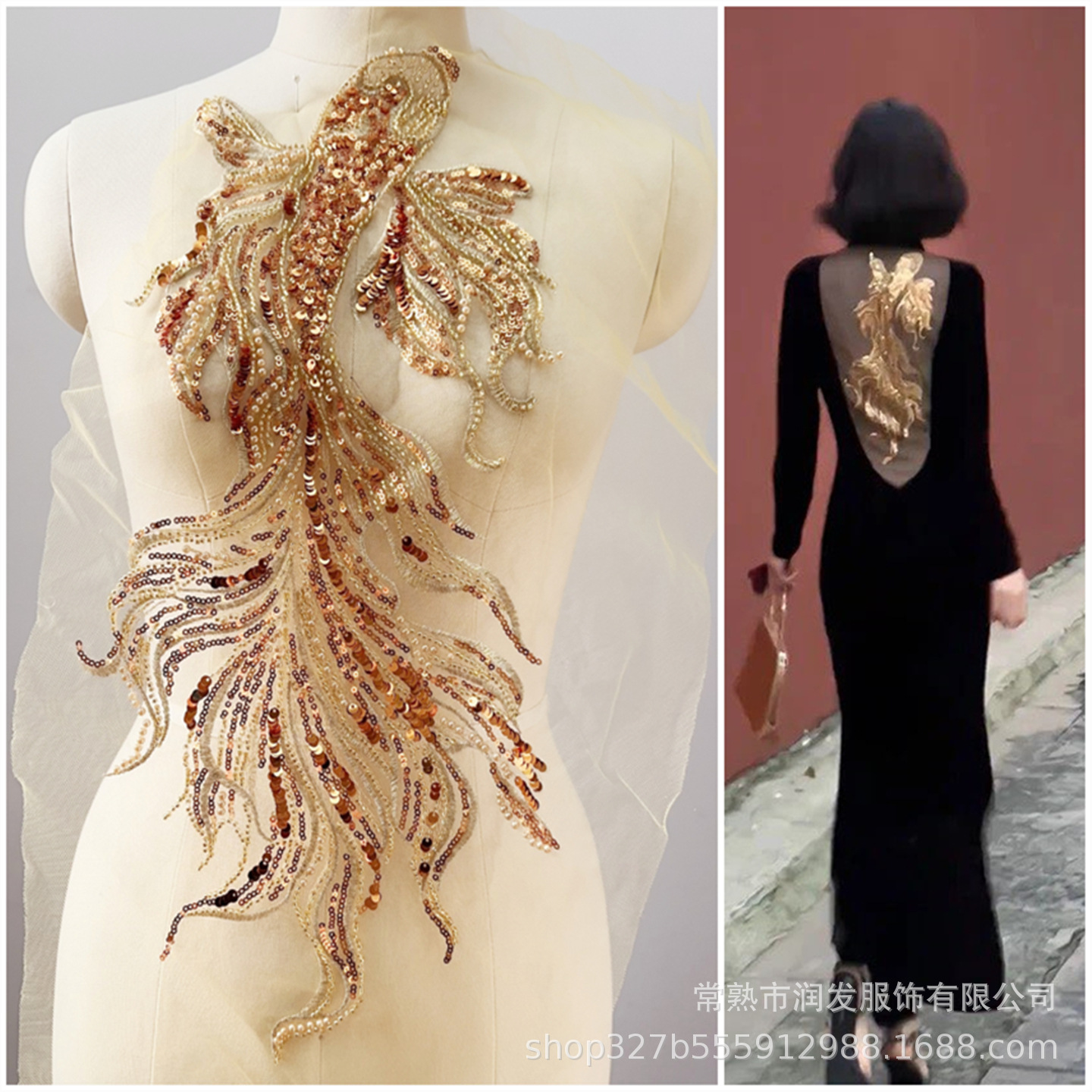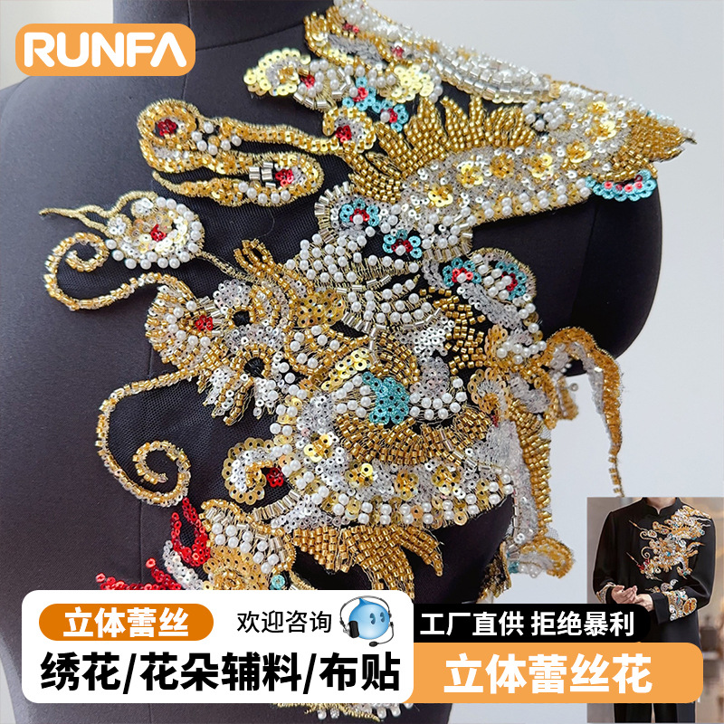 常熟潤髪服装シャンパンネット糸金色魚鱗スパンコールビーズ刺繍レース漢服ベルトアクセサリー頭飾り
