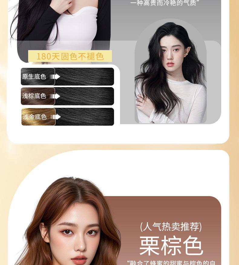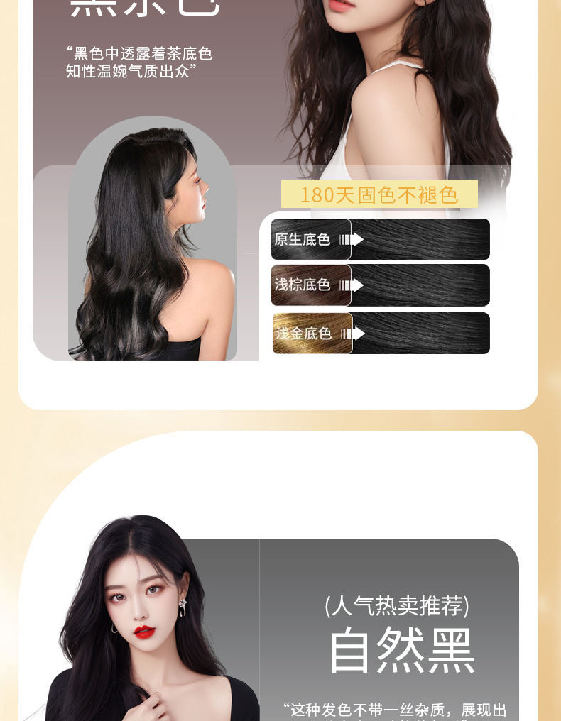 颜色 自然黑,栗棕色,黑茶色,自然黑+栗棕色,自然黑+黑茶色,栗棕色+黑茶色,自然黑2袋,栗棕色2袋,黑茶色2袋,自然黑2袋+发膜1支,栗棕色2袋+发膜1支,黑茶色2袋+发膜1支,自然黑+栗棕色+发膜1支,自然黑+黑茶色+发膜1支,栗棕色+黑茶色+发膜1支,120ml固色发膜一支