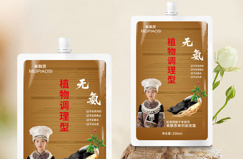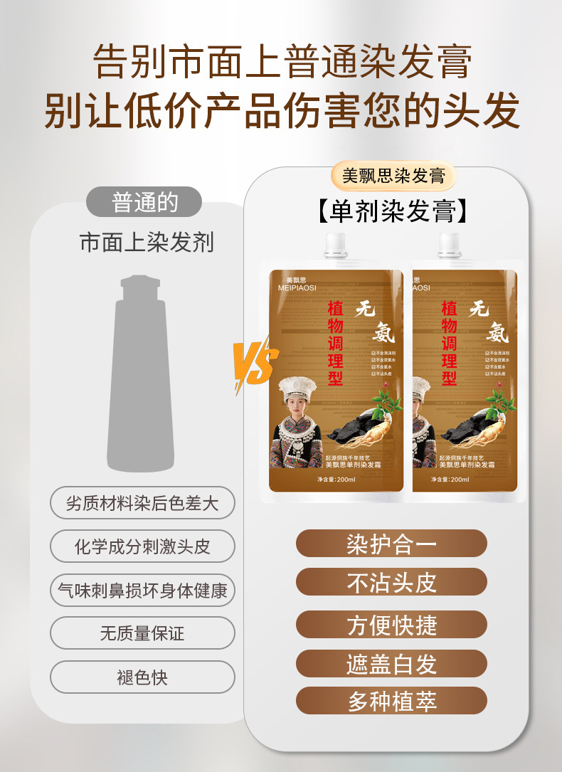 美飘思草本手工熬制单剂护染膏无氨植物原料养发盖白发染发剂