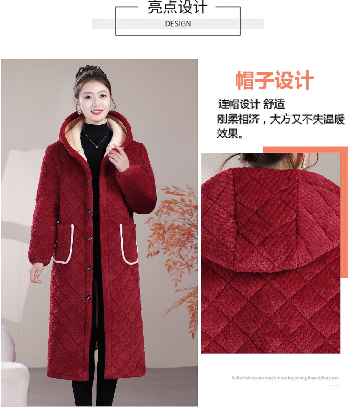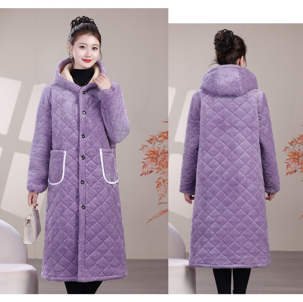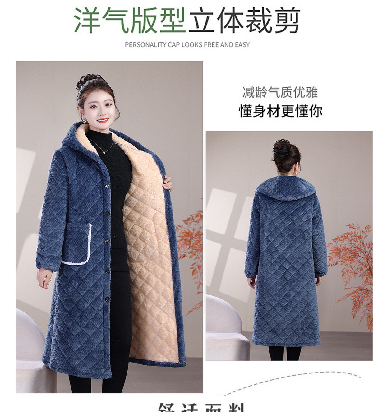 中老年女装冬季家居服保暖棉服加绒加厚棉衣休闲大褂加长过膝罩衣