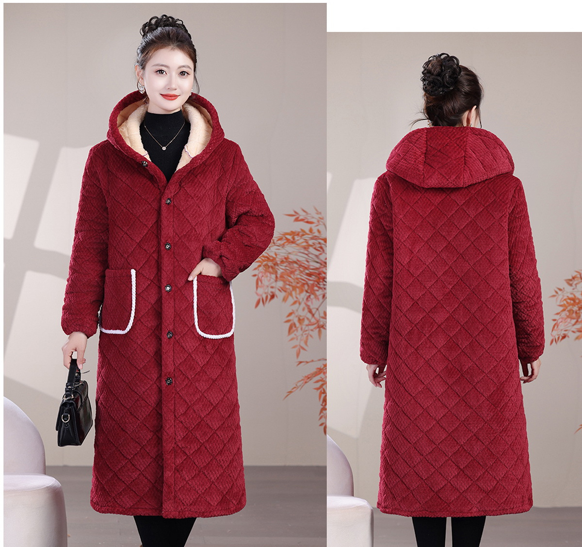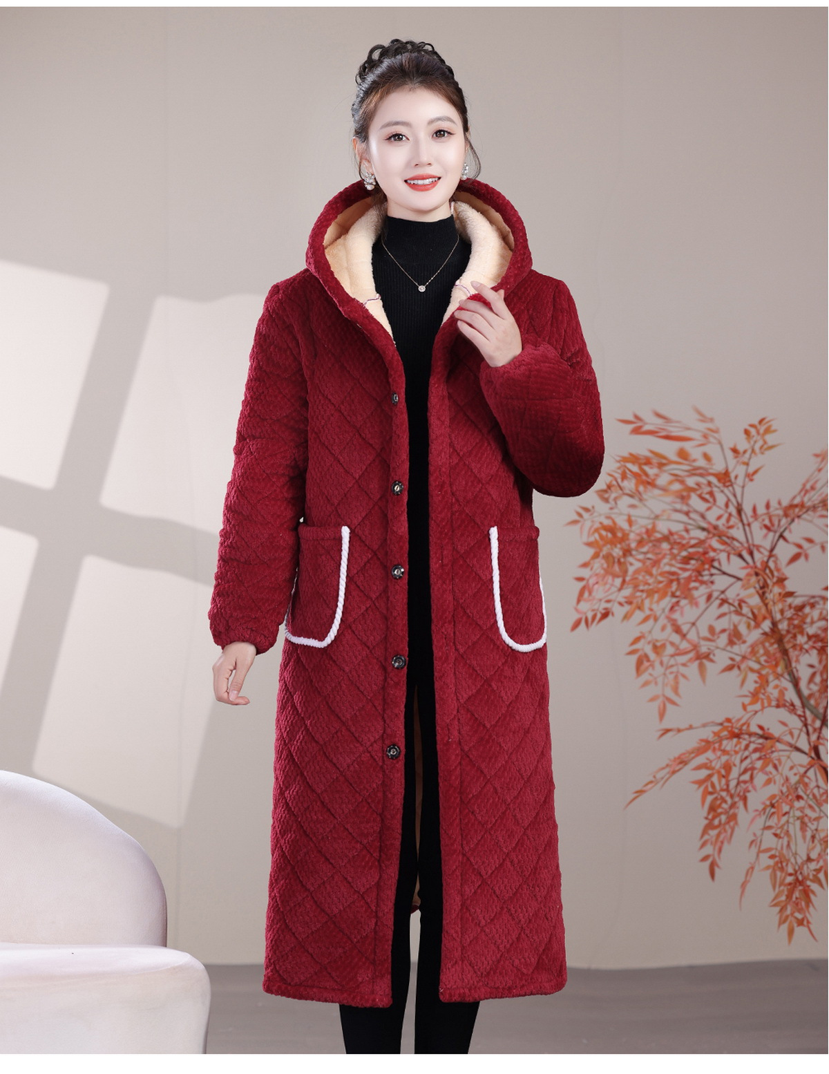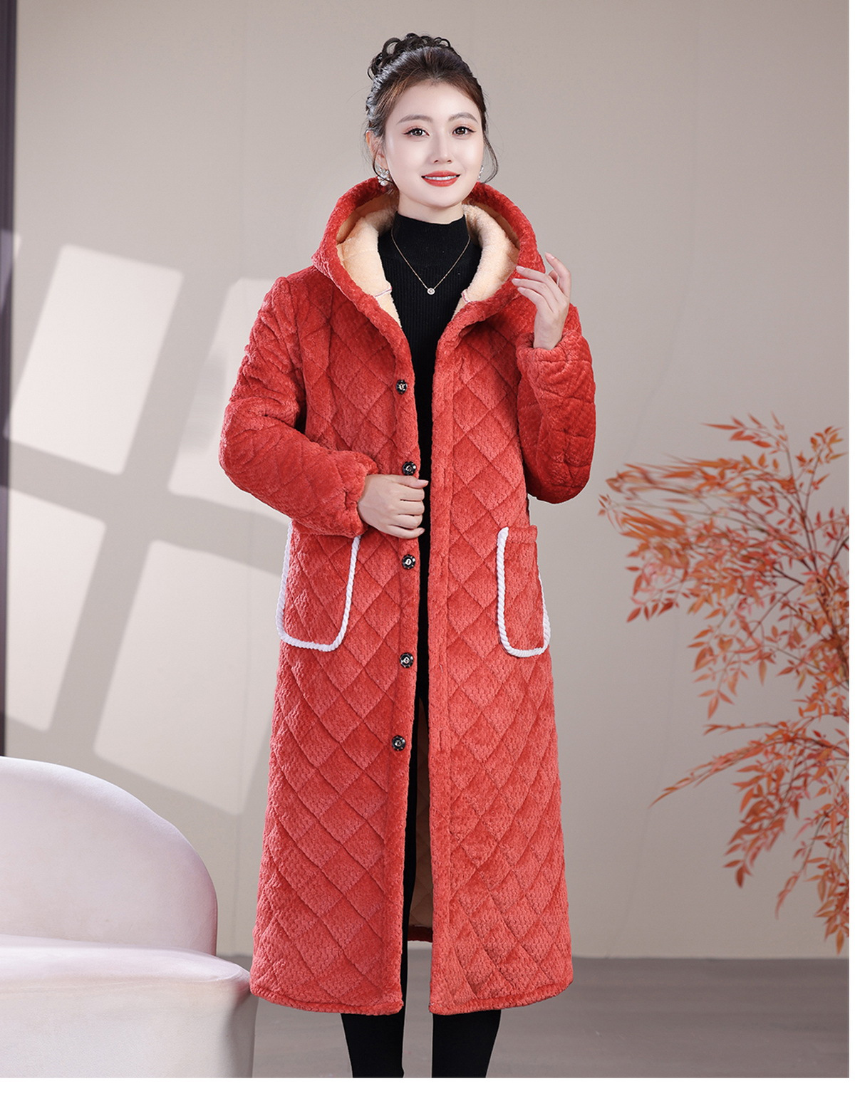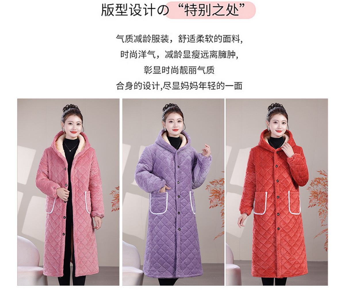 中老年女装冬季家居服保暖棉服加绒加厚棉衣休闲大褂加长过膝罩衣