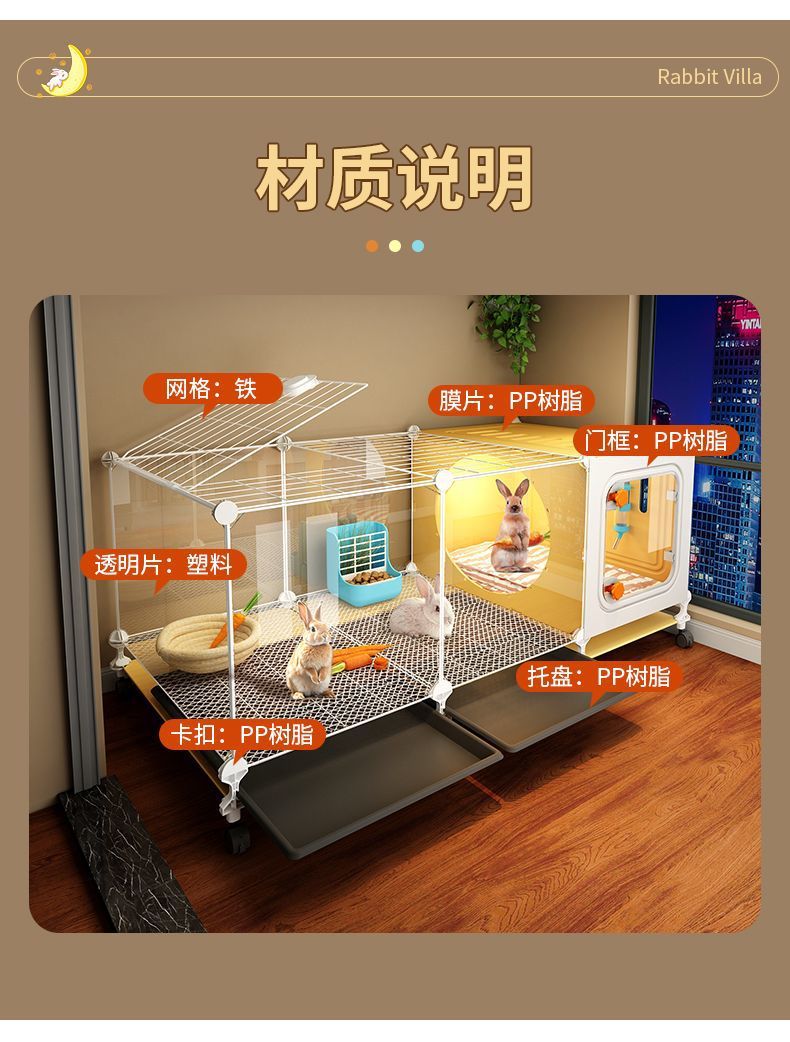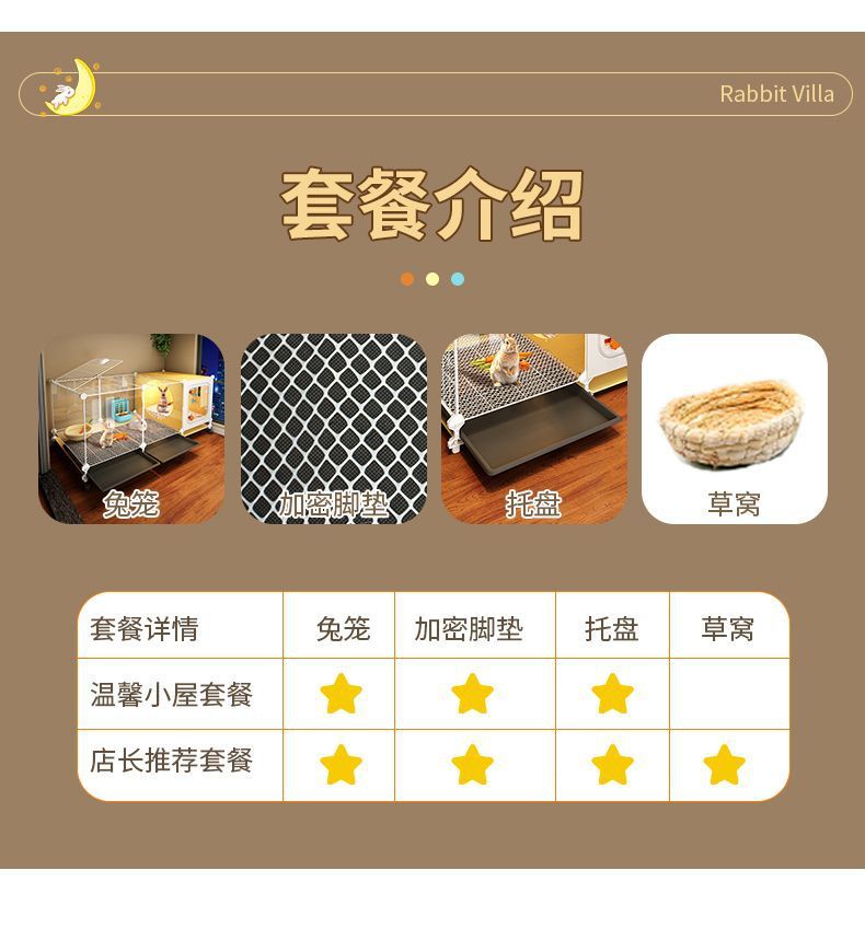 颜色 温馨小屋套餐:兔笼+加密脚垫+托盘,店长推荐套餐:兔笼+加密脚垫+托盘+草窝