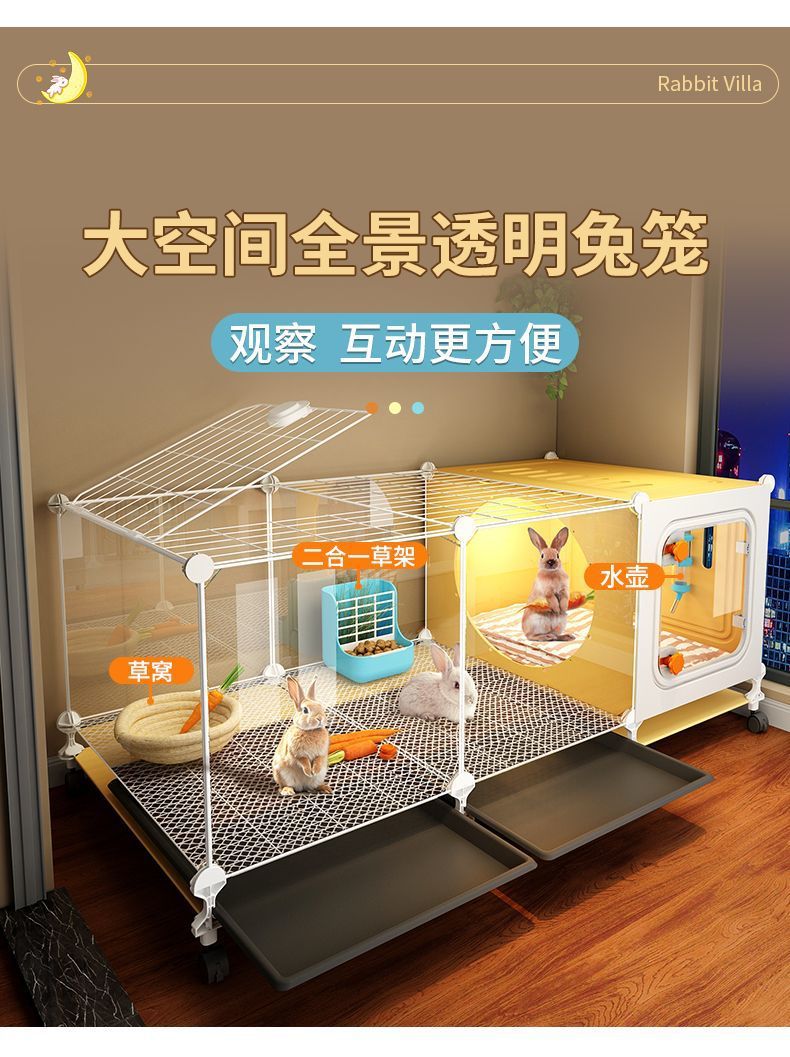 透明观景兔笼兔子笼子带厕所家用大号室内养兔子宠物豪华别墅直销