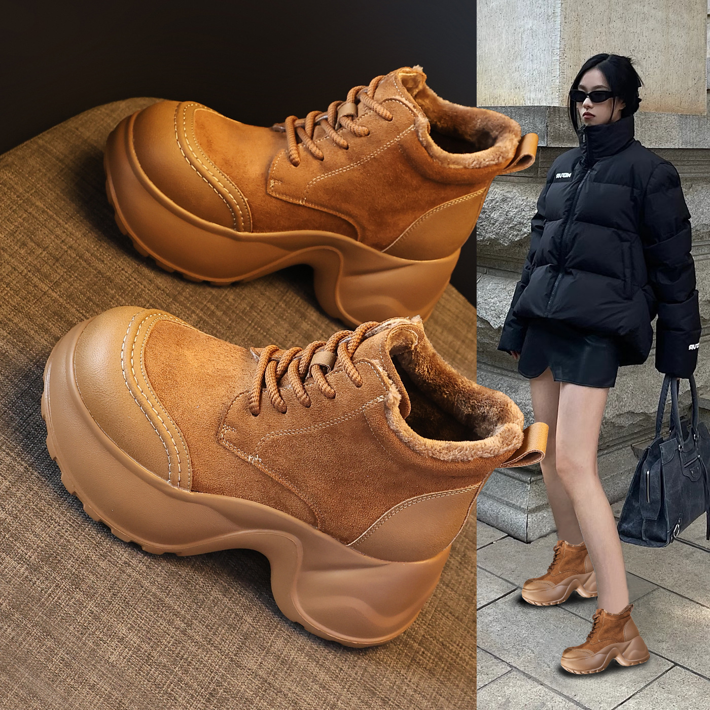 时尚加绒英伦风马丁靴女 高跟时尚短靴 欧美潮ins