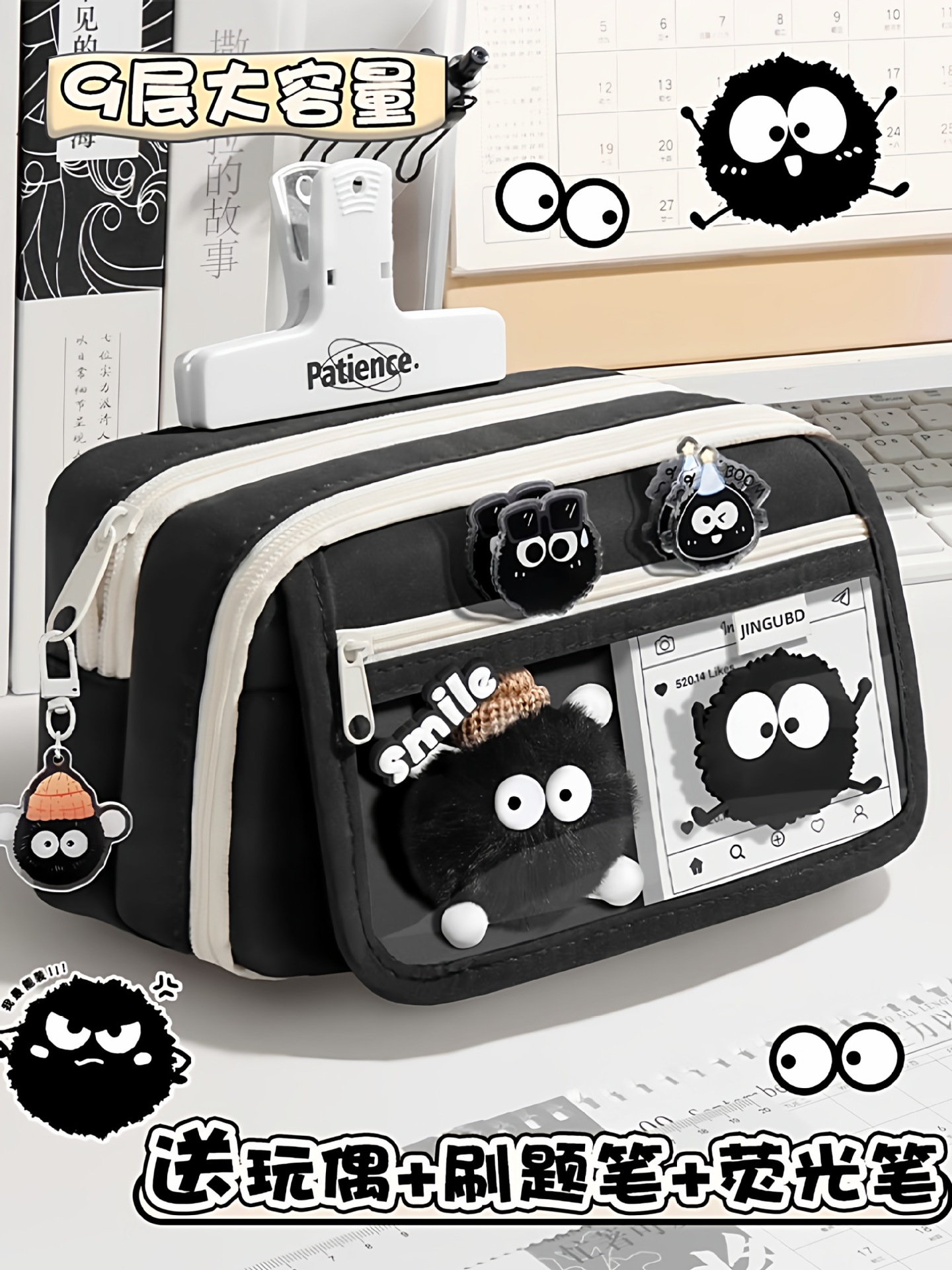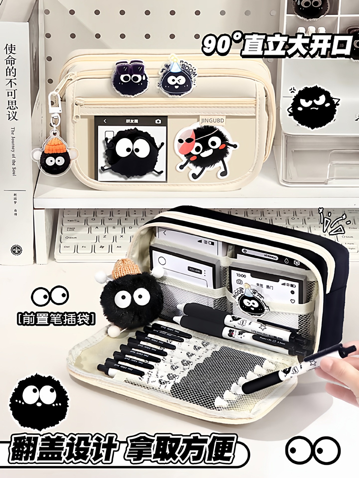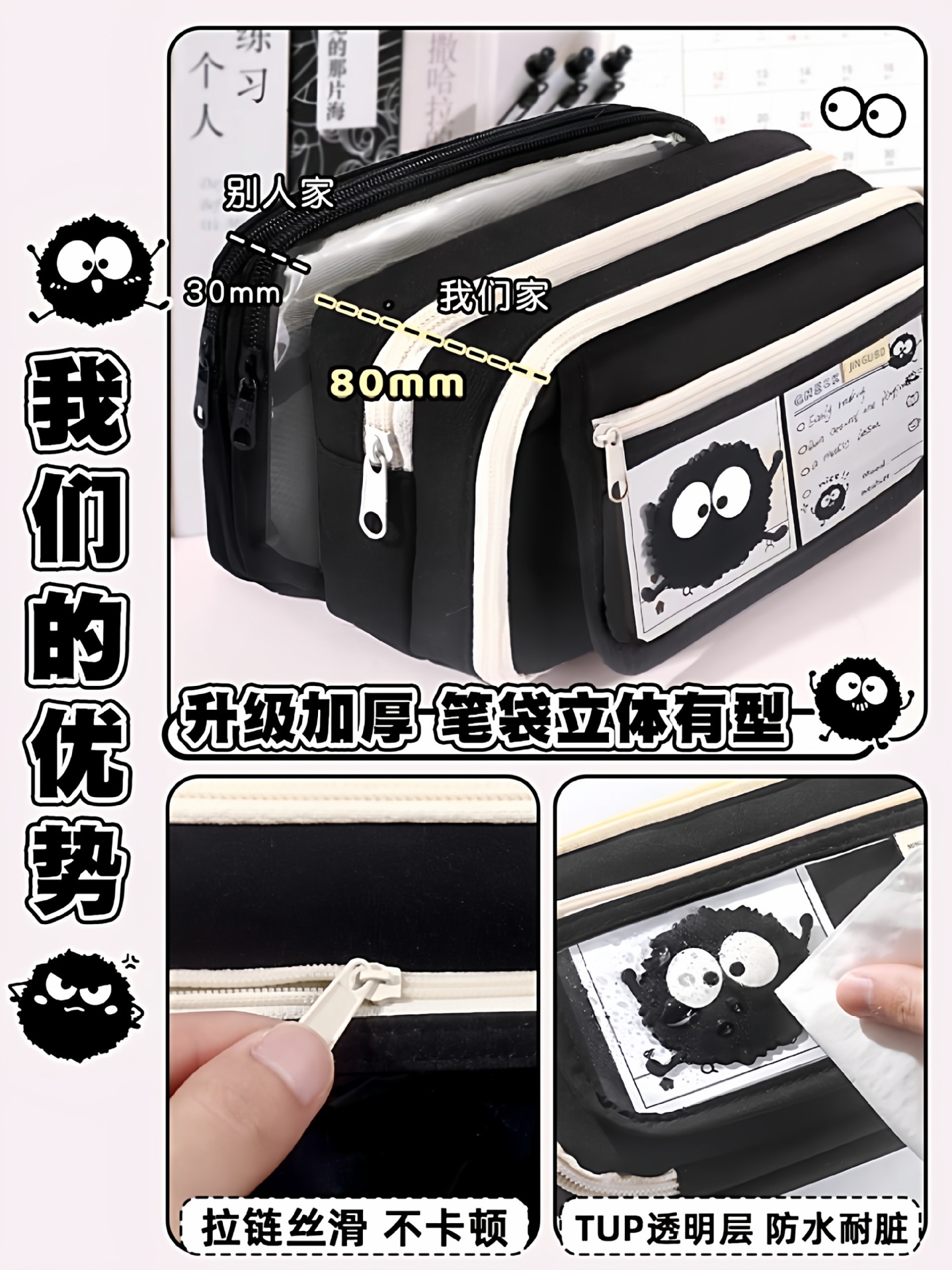 小煤球超大容量透明笔袋男女生文具袋2025新款高颜值ins风文具盒