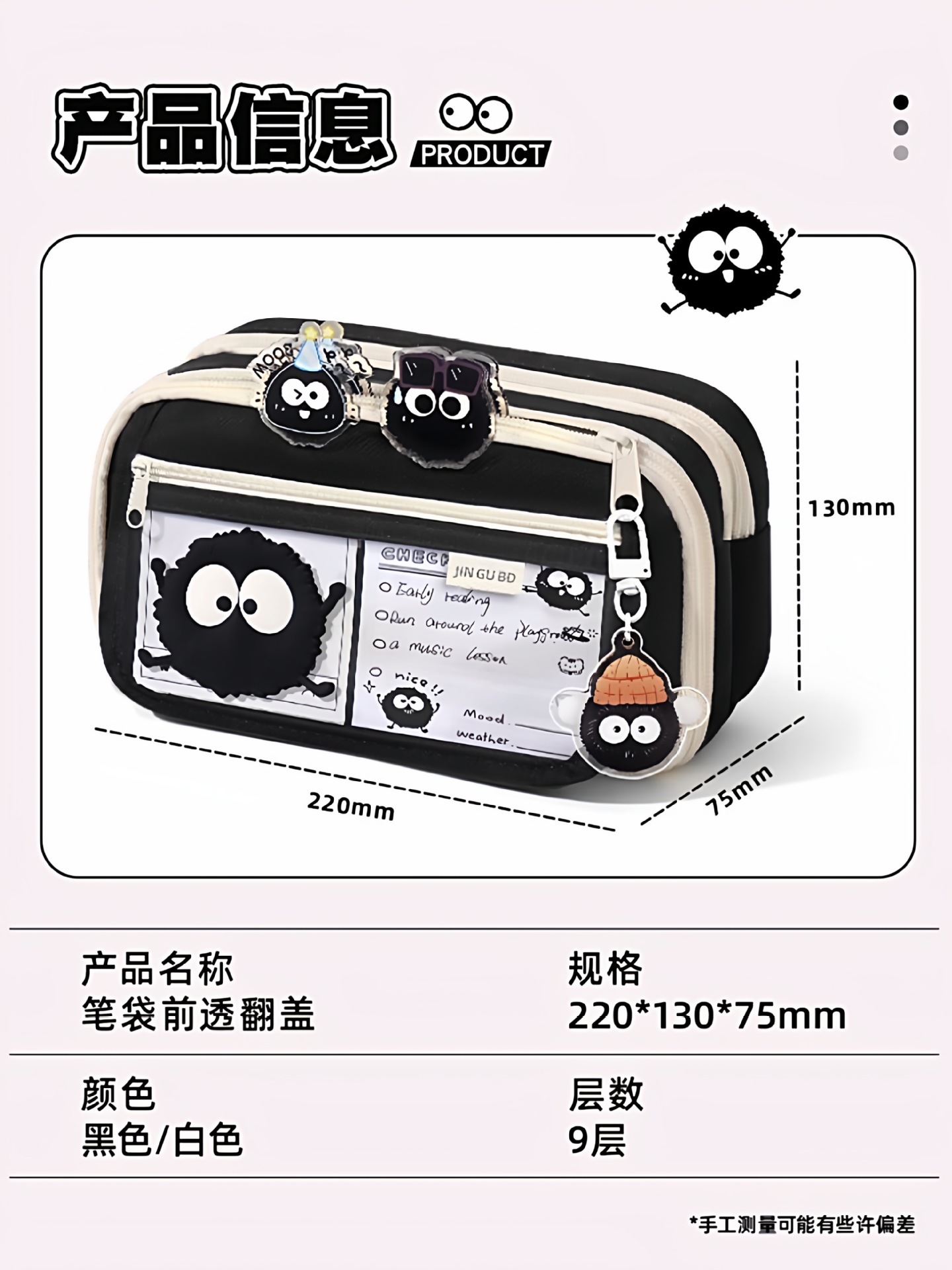 颜色 【9层大容量】翻盖黑/送小煤球贴纸.,【9层大容量】翻盖黑/送小煤球贴纸+50张便签.,【9层大容量】翻盖黑/送小煤球贴纸+50张便签+5小煤球笔+吊坠+pp夹.,【9层大容量】翻盖黑/送小煤球贴纸+ins便利贴*50+刷题笔*5+挂坠+pp夹+线圈本*1.,【9层大容量】翻盖黑/送小煤球贴纸+ins便利贴*50+挂坠+pp夹.+线圈本*1+套尺4件+手帐夹,【小煤球DIY套装】翻盖黑/送小煤球贴纸.,【小煤球超值组合装】翻盖黑/送小煤球贴纸.,【小煤球学习进阶组合】翻盖黑/送小煤球贴纸..