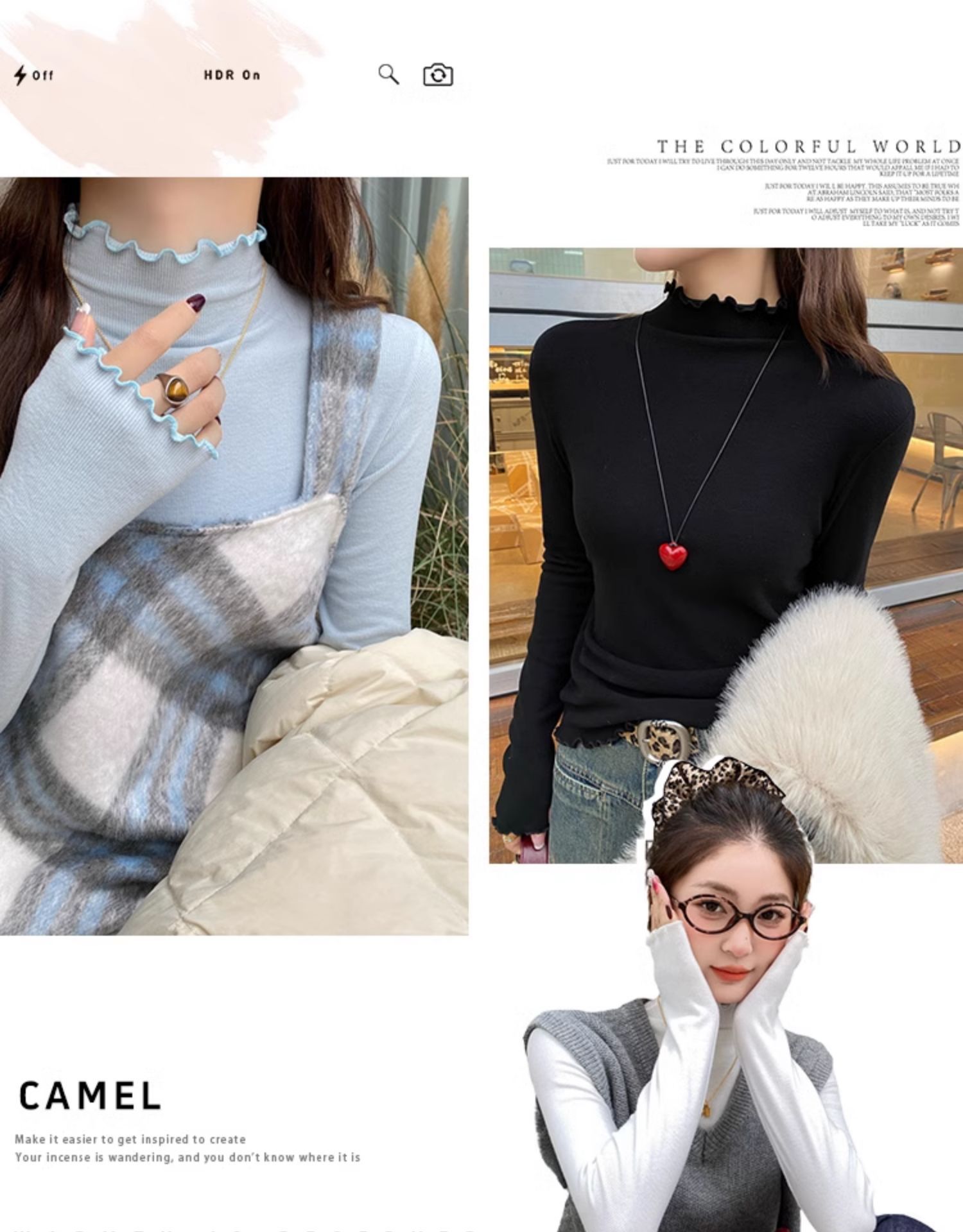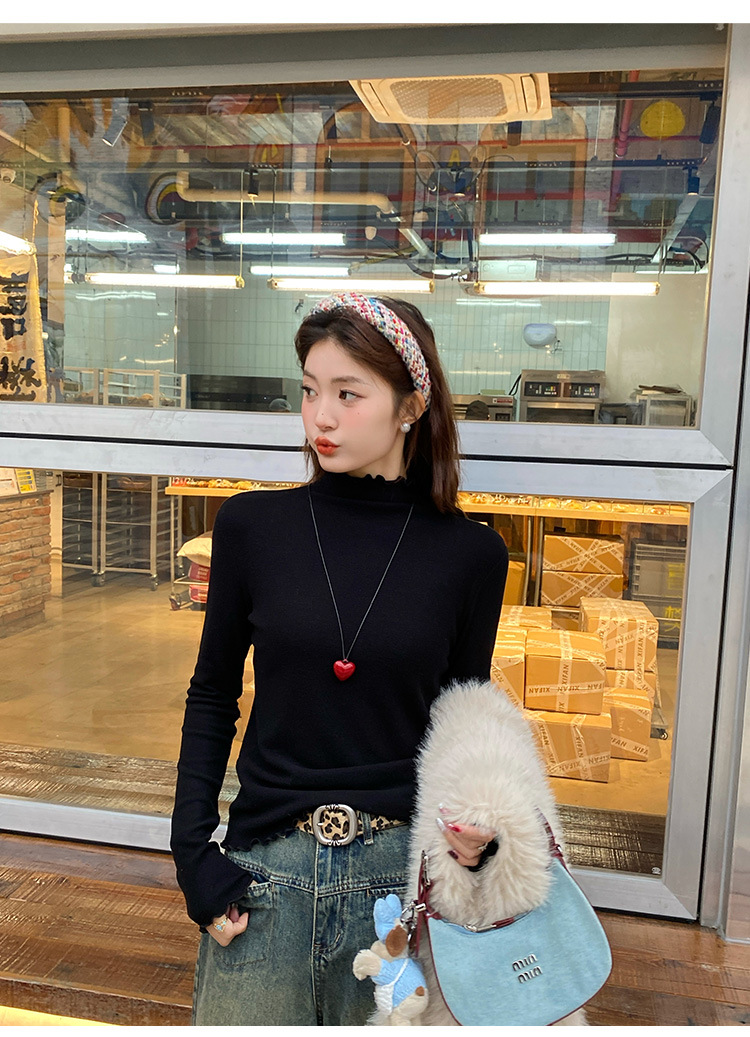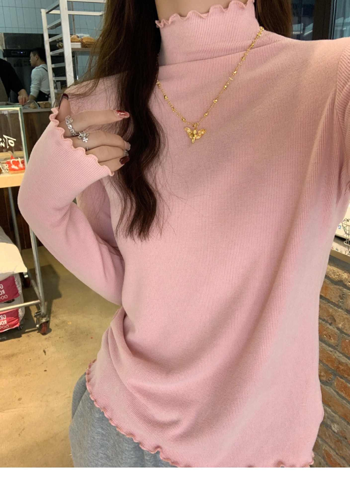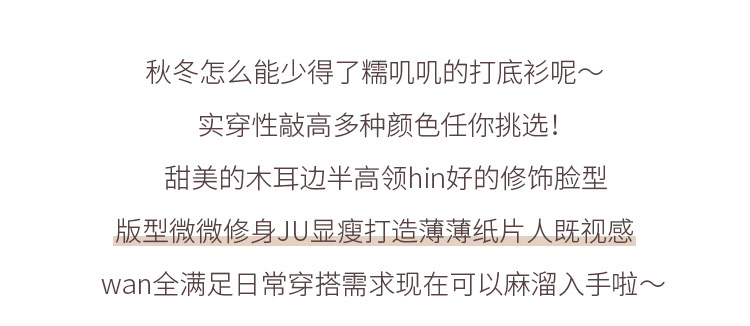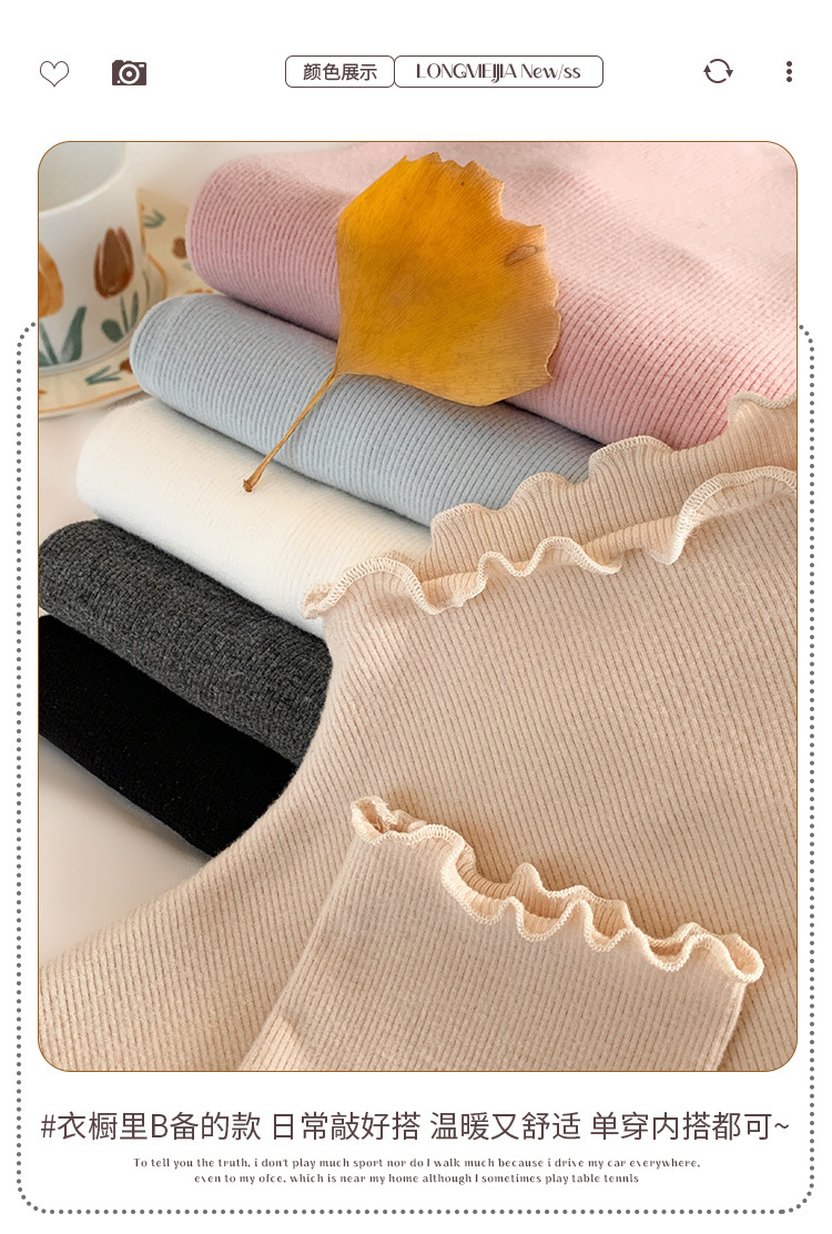 yh法式半高领针织打底衫亲肤百搭软糯木耳边羊毛叠穿内搭上衣