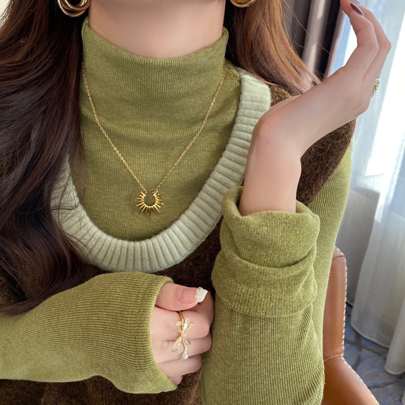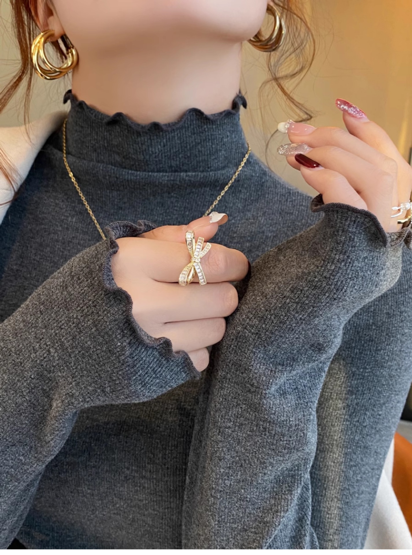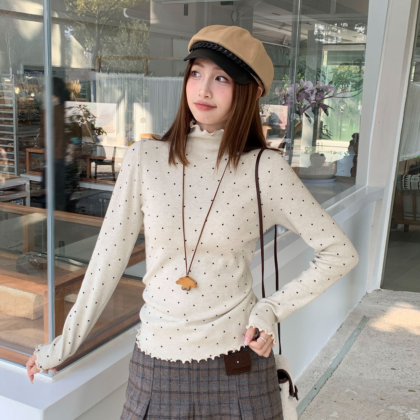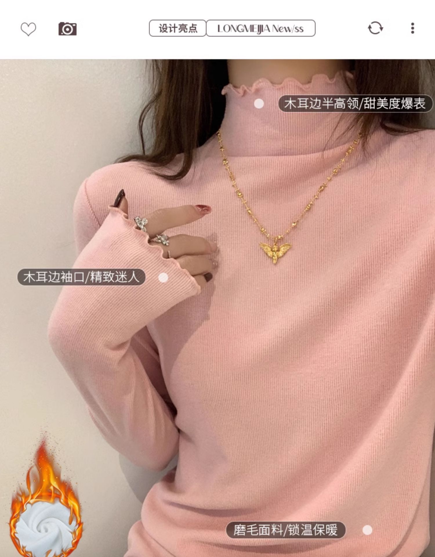 yh法式半高领针织打底衫亲肤百搭软糯木耳边羊毛叠穿内搭上衣