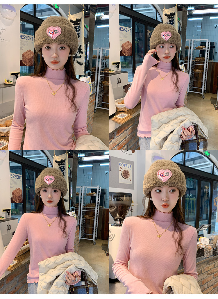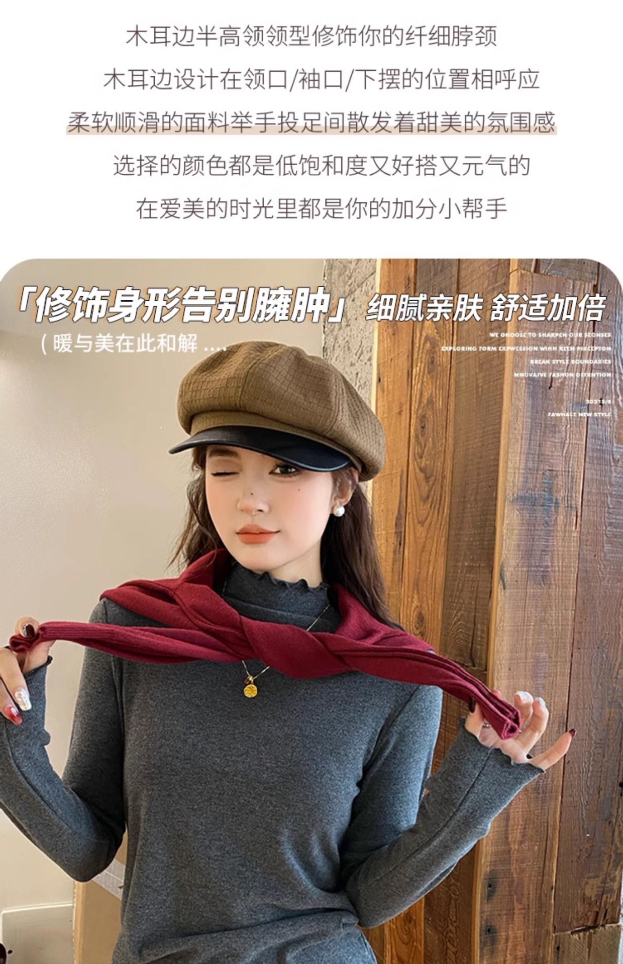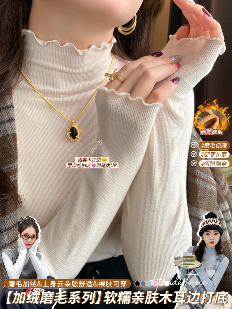 半高领磨毛打底衫女内搭2025秋冬季新款高级感木耳边修身上衣
