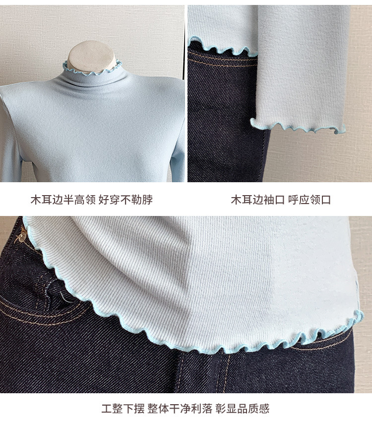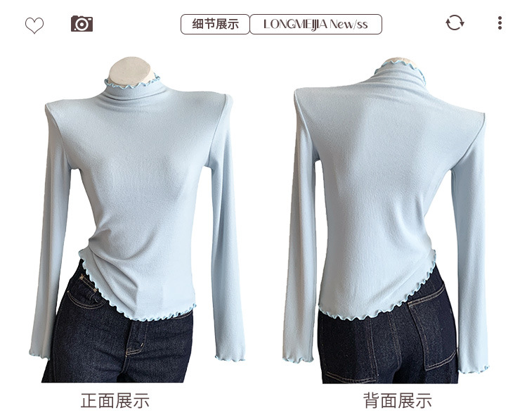 半高领打底衫女装内搭薄款长袖T恤2025秋季木耳边上衣女修身型