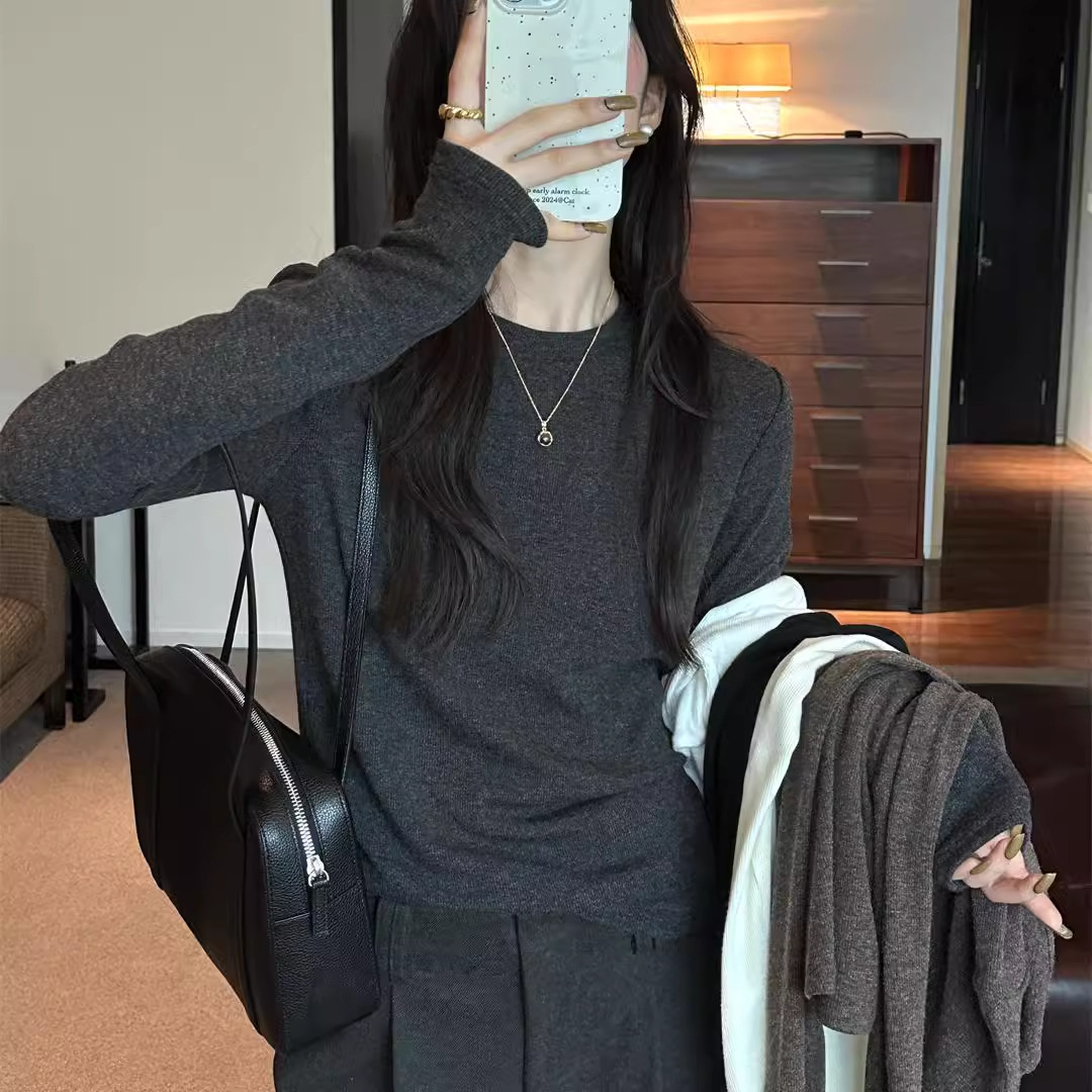 圆领长袖打底衫女内搭2025秋新款薄款毛衣修身百搭针织上衣