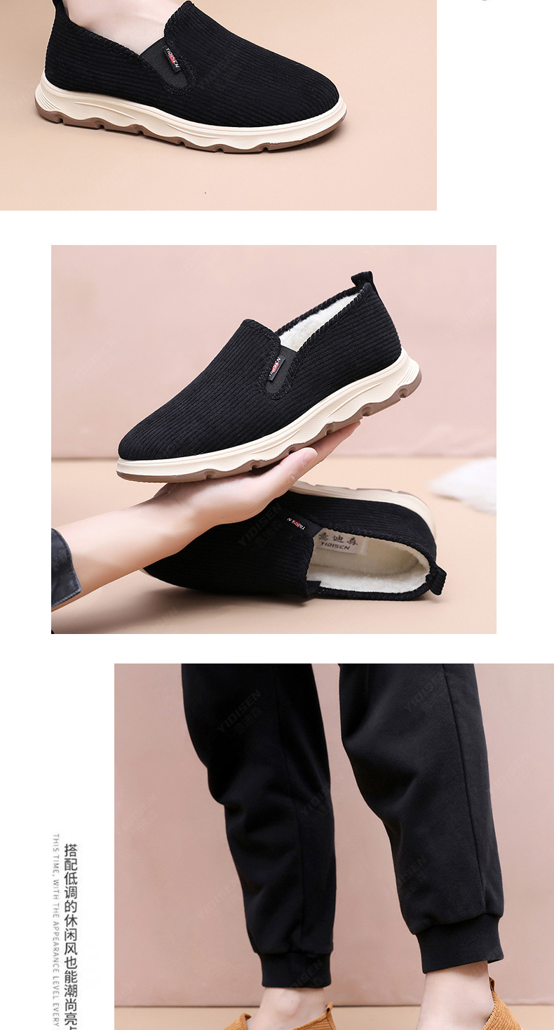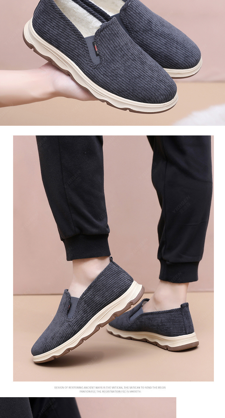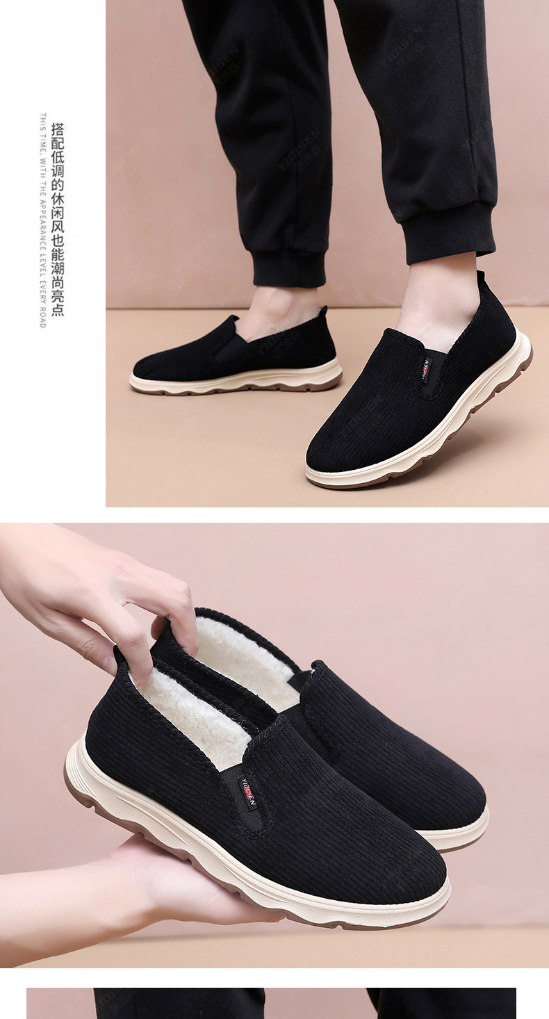 冬季新款加绒加厚保暖中老年爸爸鞋防滑软底老北京布鞋一脚蹬棉鞋
