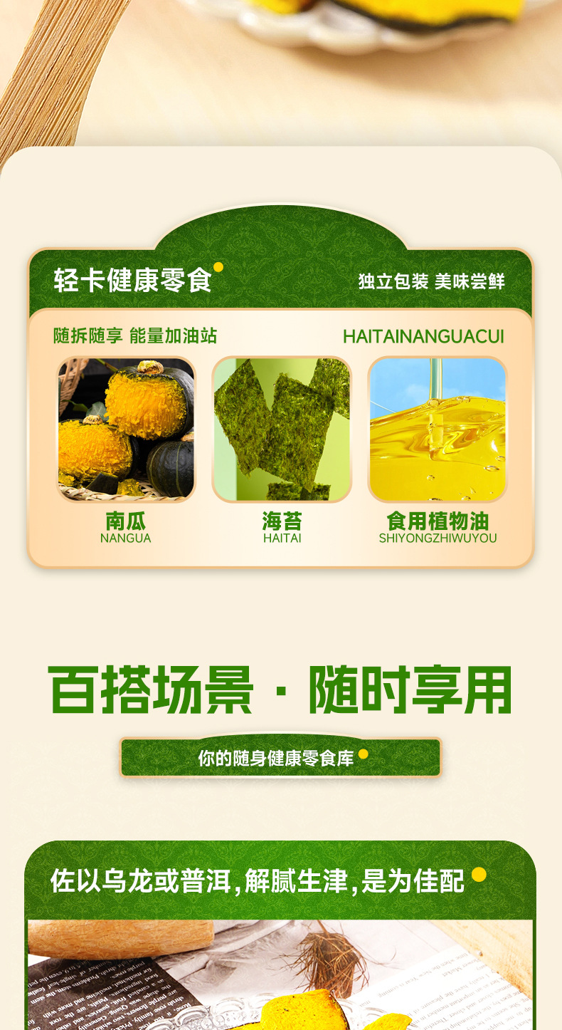 包装规格 海苔南瓜脆1袋,海苔南瓜脆2袋,海苔南瓜脆3袋,海苔南瓜脆4袋,海苔南瓜脆5袋,海苔南瓜脆6袋,海苔南瓜脆8袋,海苔南瓜脆10袋