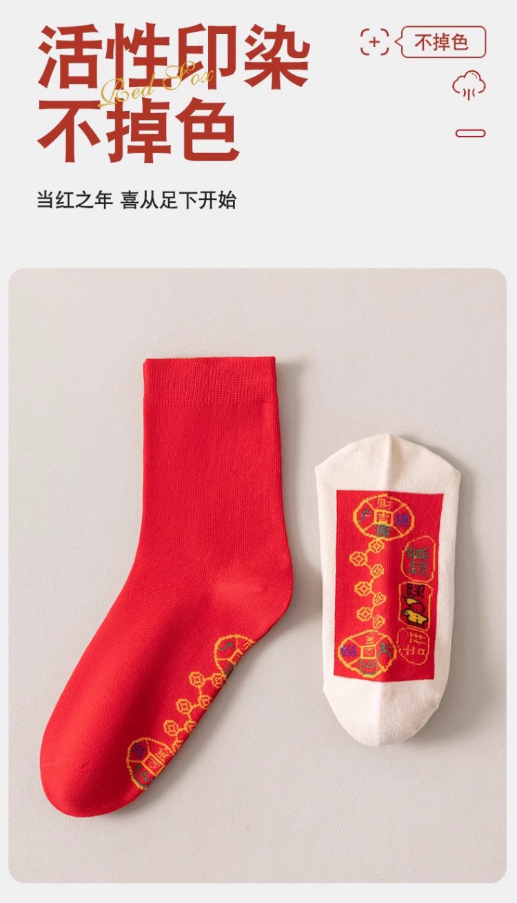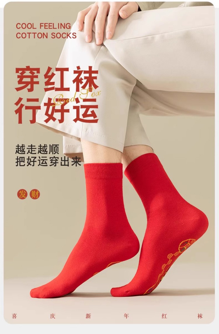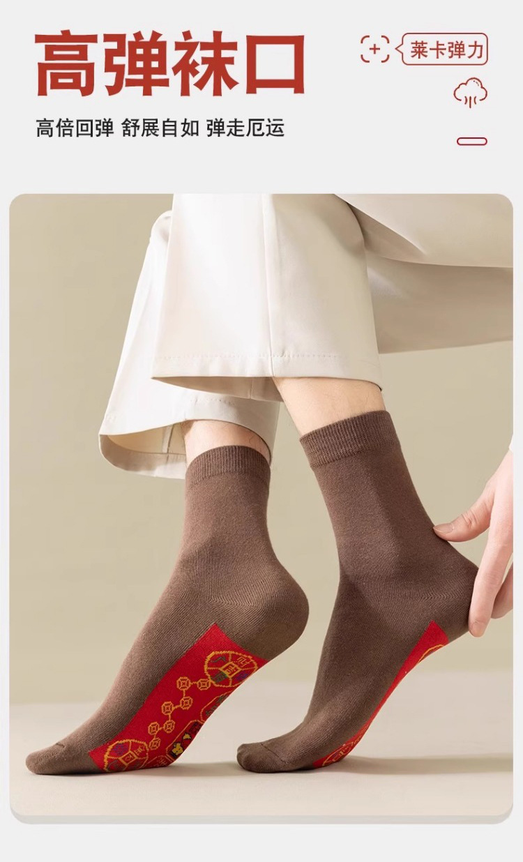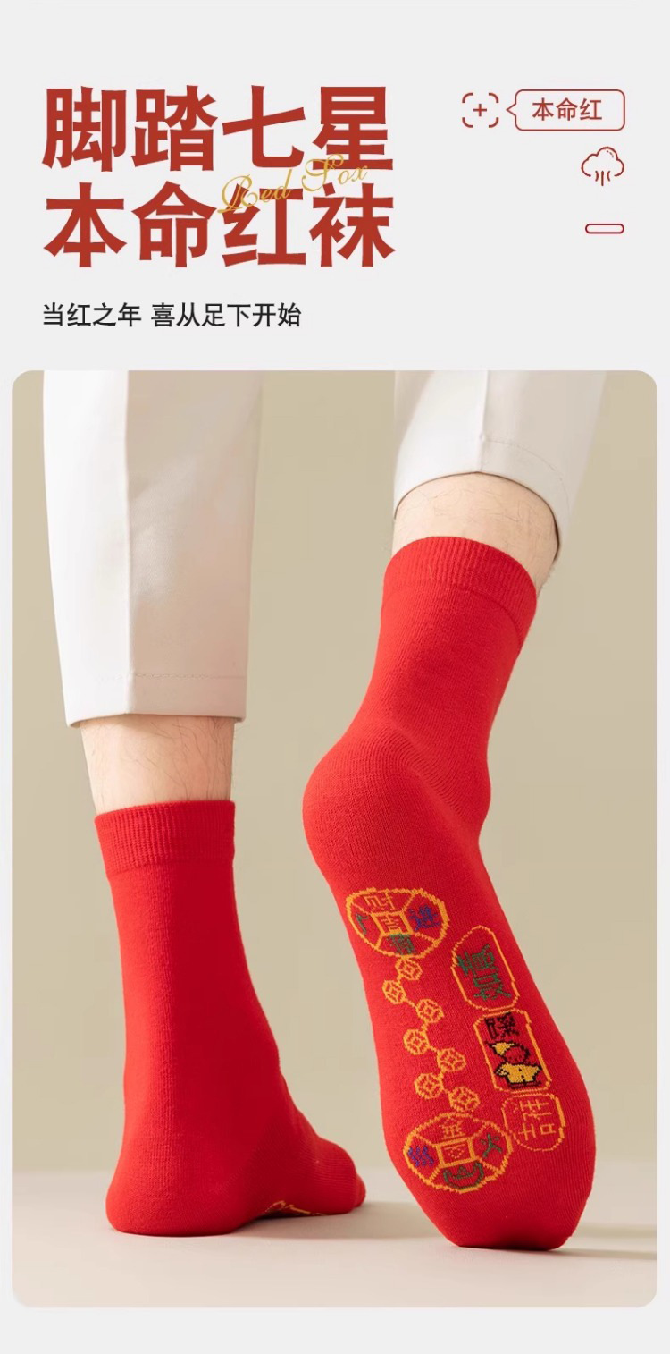 本命年脚踏七星纯棉袜子男女款宽松高弹鸿运袜抗起球喜庆诸暨袜子