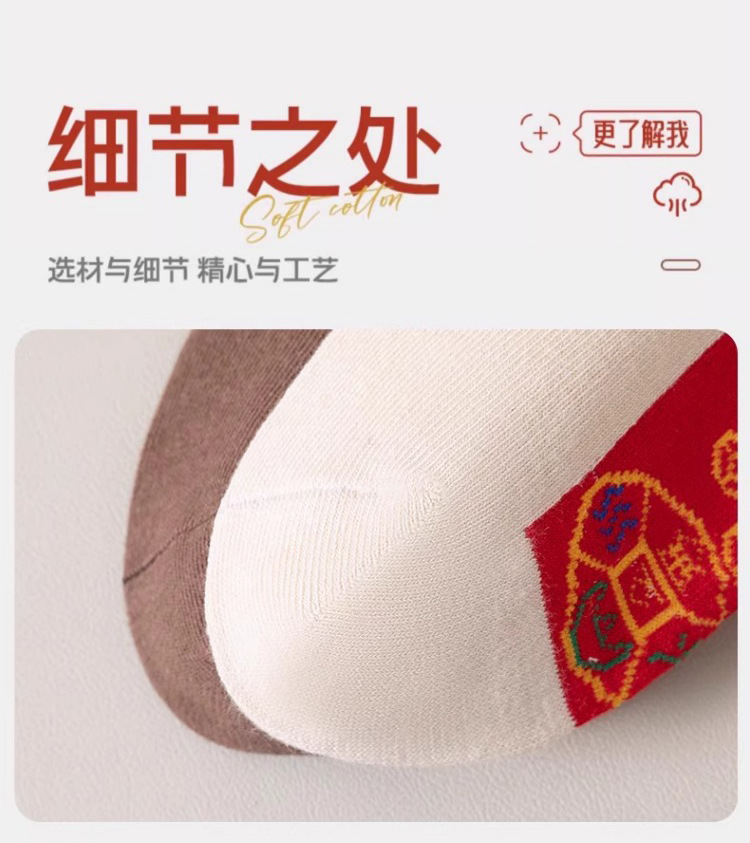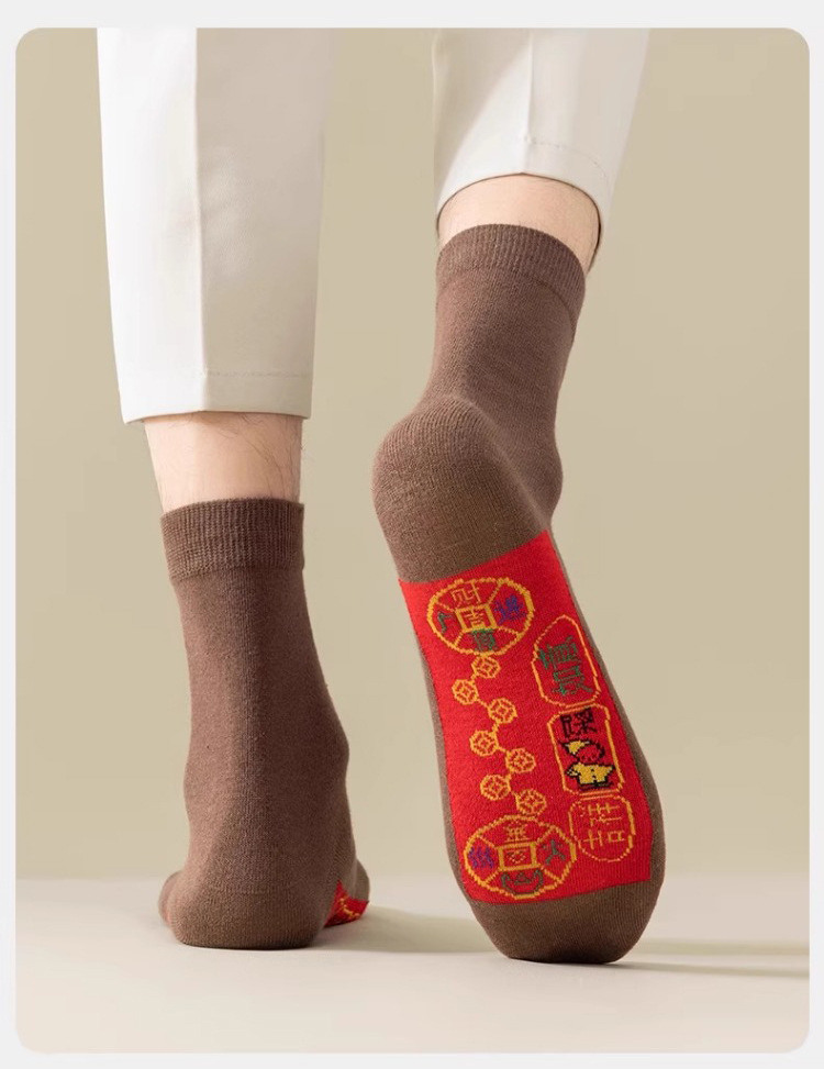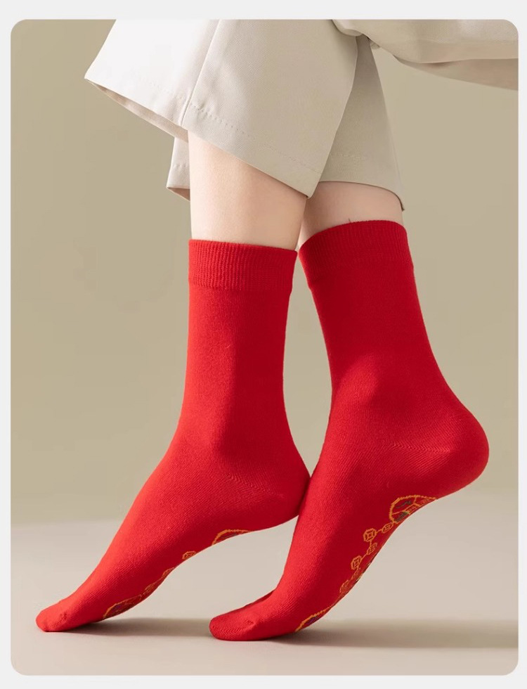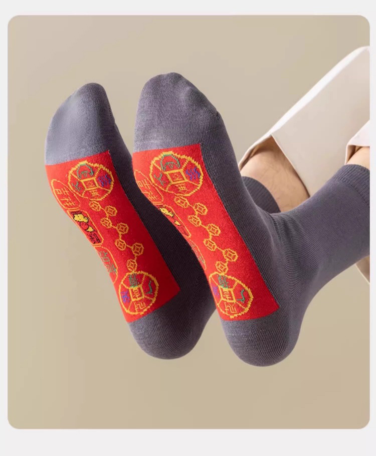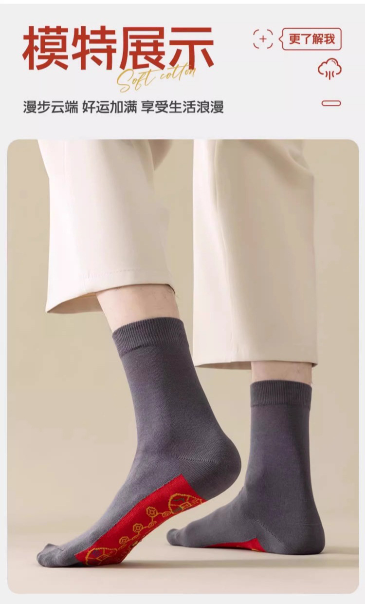 本命年脚踏七星纯棉袜子男女款宽松高弹鸿运袜抗起球喜庆诸暨袜子