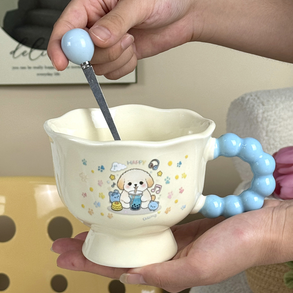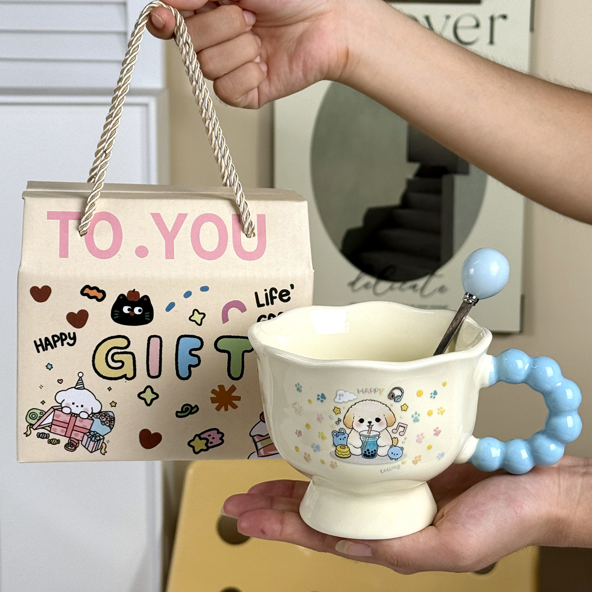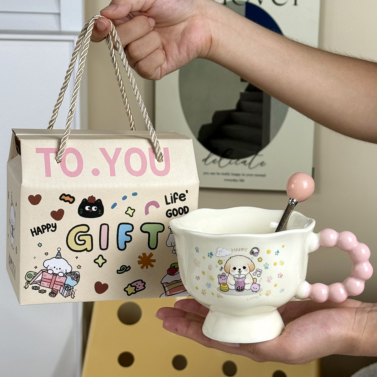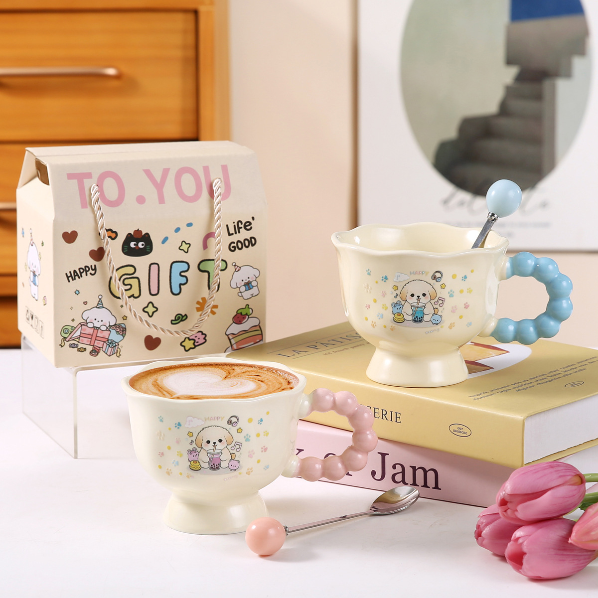 可爱卡通ins小狗马克杯高颜值情侣陶瓷水杯送女生生日伴手礼物