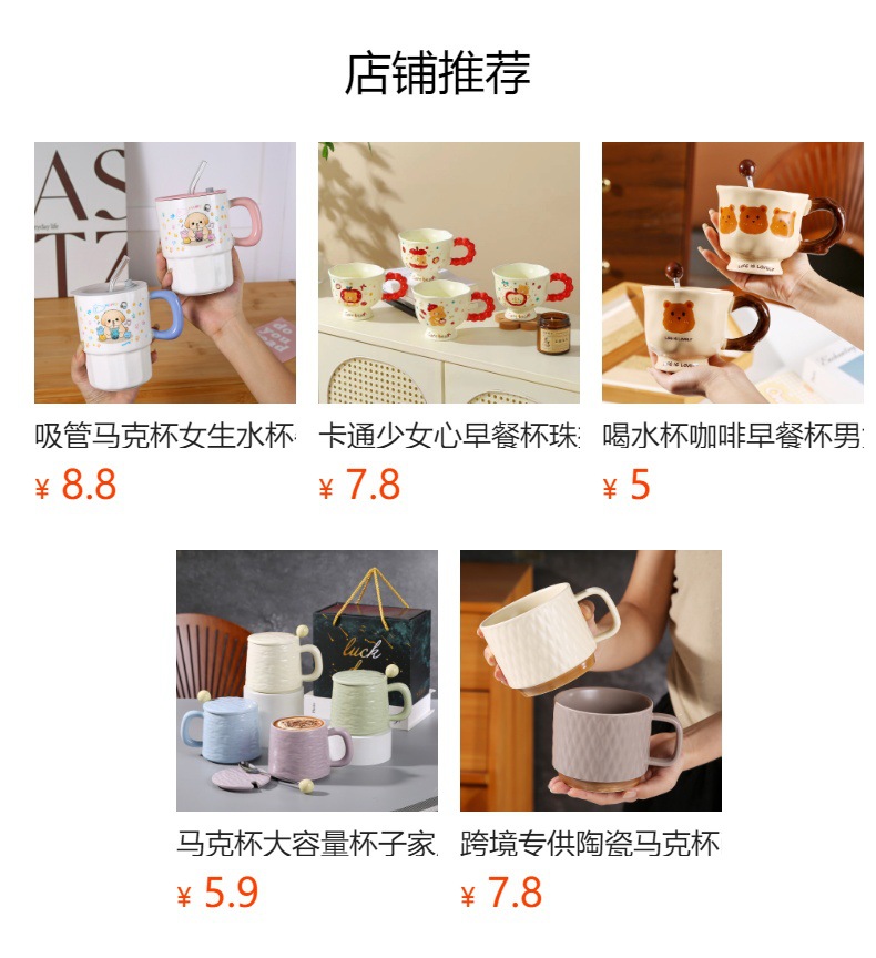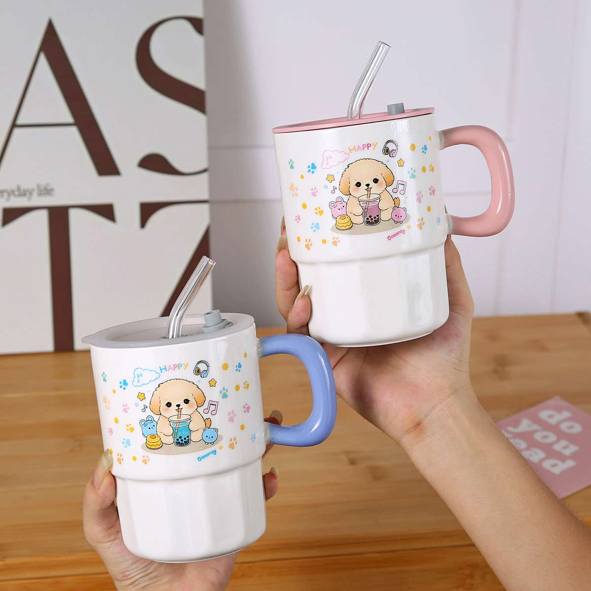 卡通萌宠礼物吸管马克陶瓷水杯子可爱生日陶瓷杯圣诞伴手礼萌趣