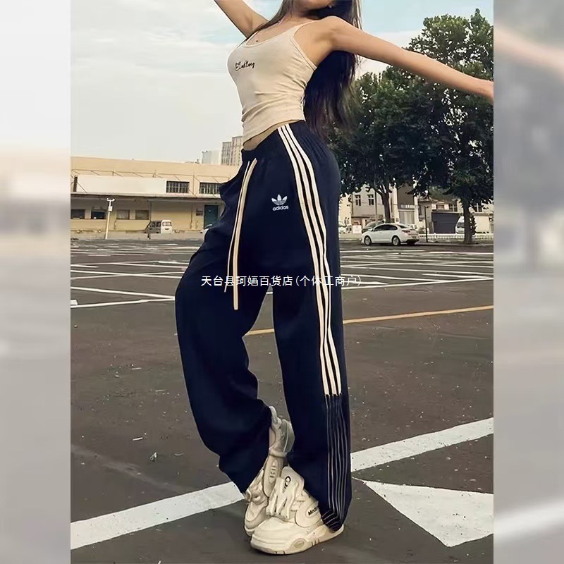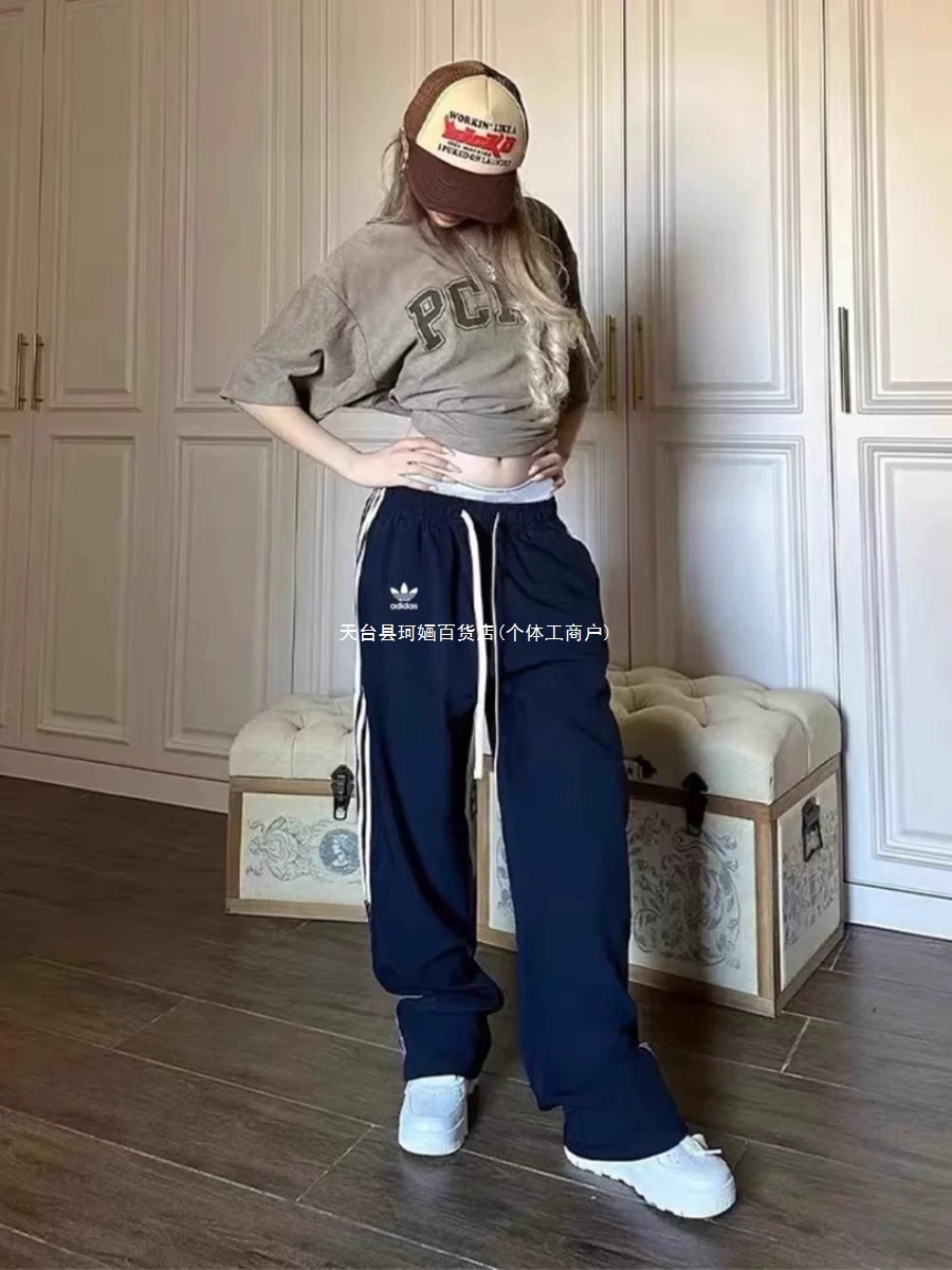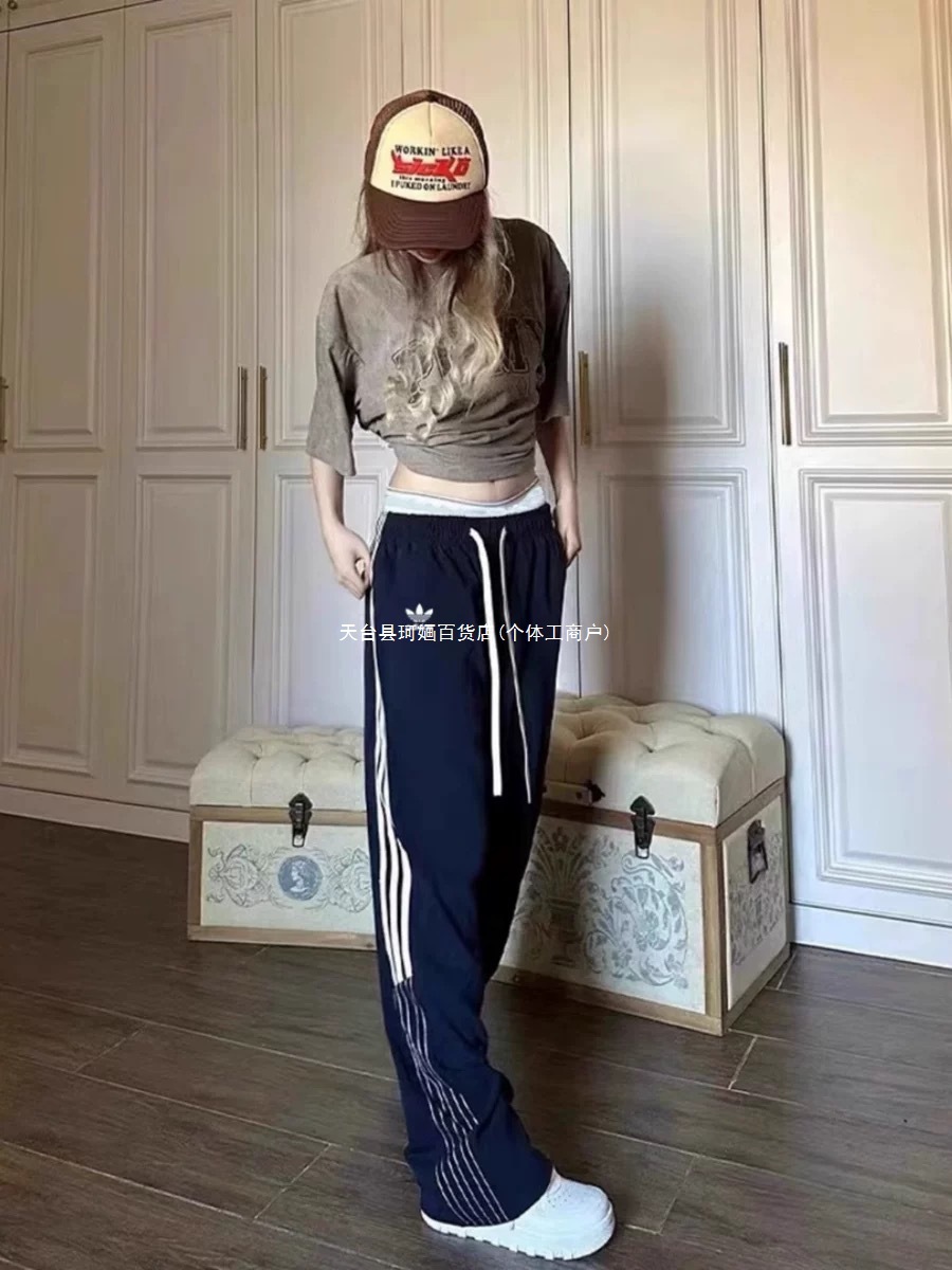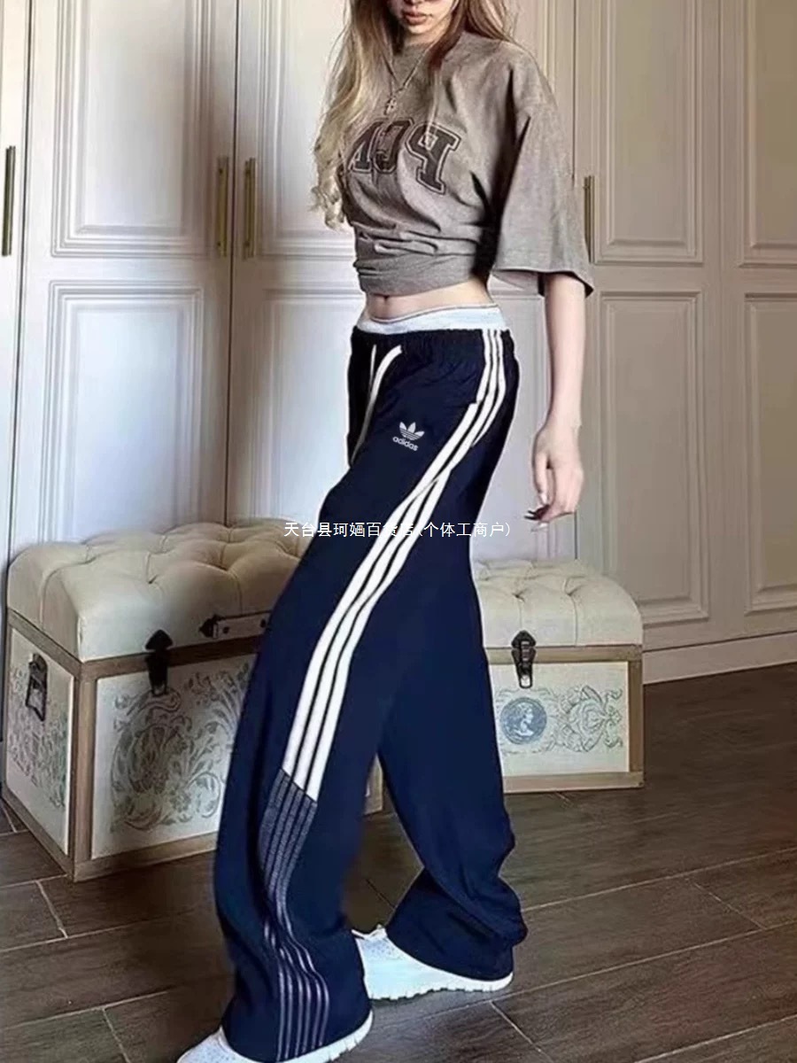 美式运动裤女2025秋冬三条杠宽松卫裤高腰直筒休闲阔腿裤