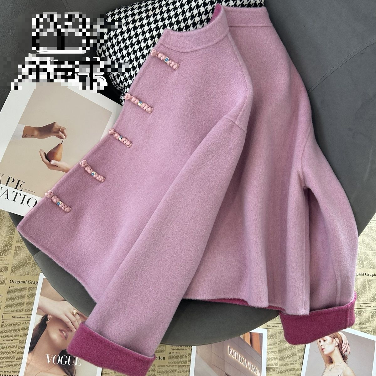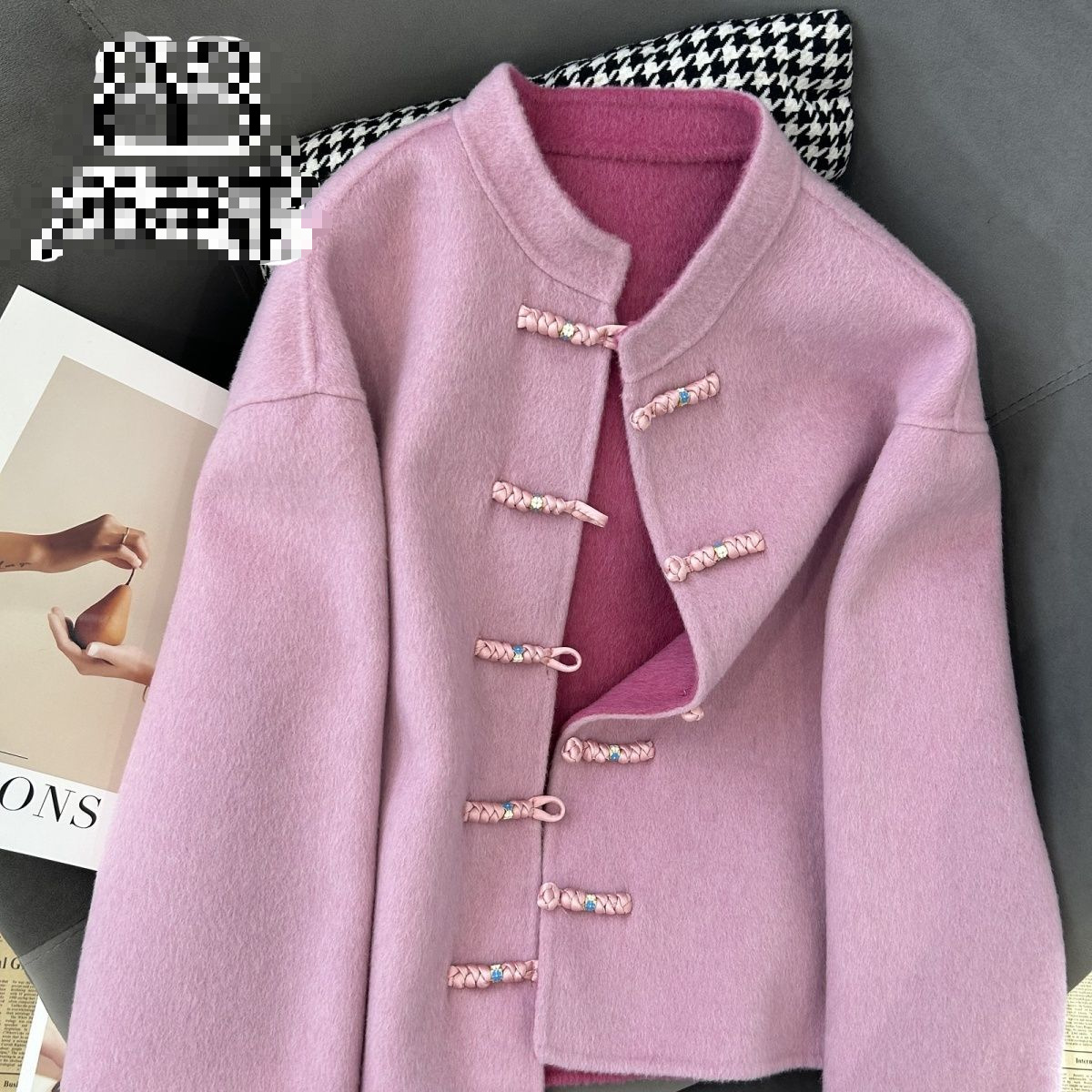 新中式国风盘扣双面仿羊绒毛呢大衣外套女短款立领2025秋冬季新款