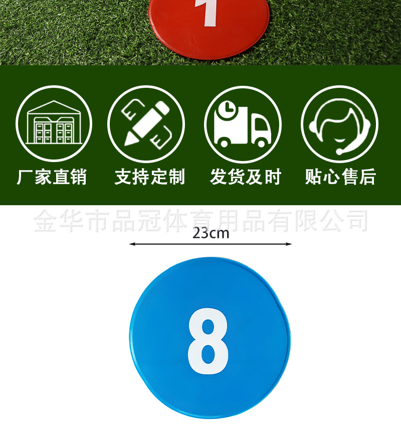 颜色 23cm数字标志碟1-10(混色),30cm数字标志碟1-10(混色),20cm字母标志碟A-J(混色),20cm数字标志碟1-10(混色),23cm篮球数字平面标志碟1-10(混色),23cm足球数字平面标志碟1-10(混色),23cm篮球数字标志碟1-10(新款),23cm方形数字标志碟1-10(混色),20cm三角篮球数字碟1-10(混色),20cm三角足球数字碟1-10(混色),20cm数字标志碟1-24(混色)