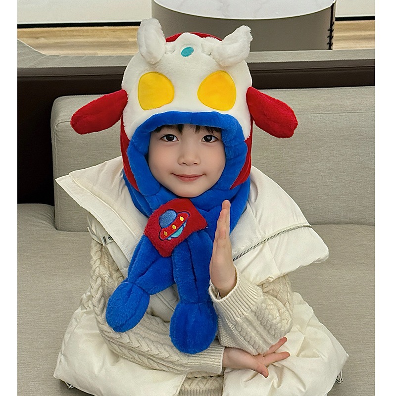 ウルトラマン子供帽子マフラー手袋一体三点セット男女赤ちゃんぬいぐるみ厚いマフラー帽子冬