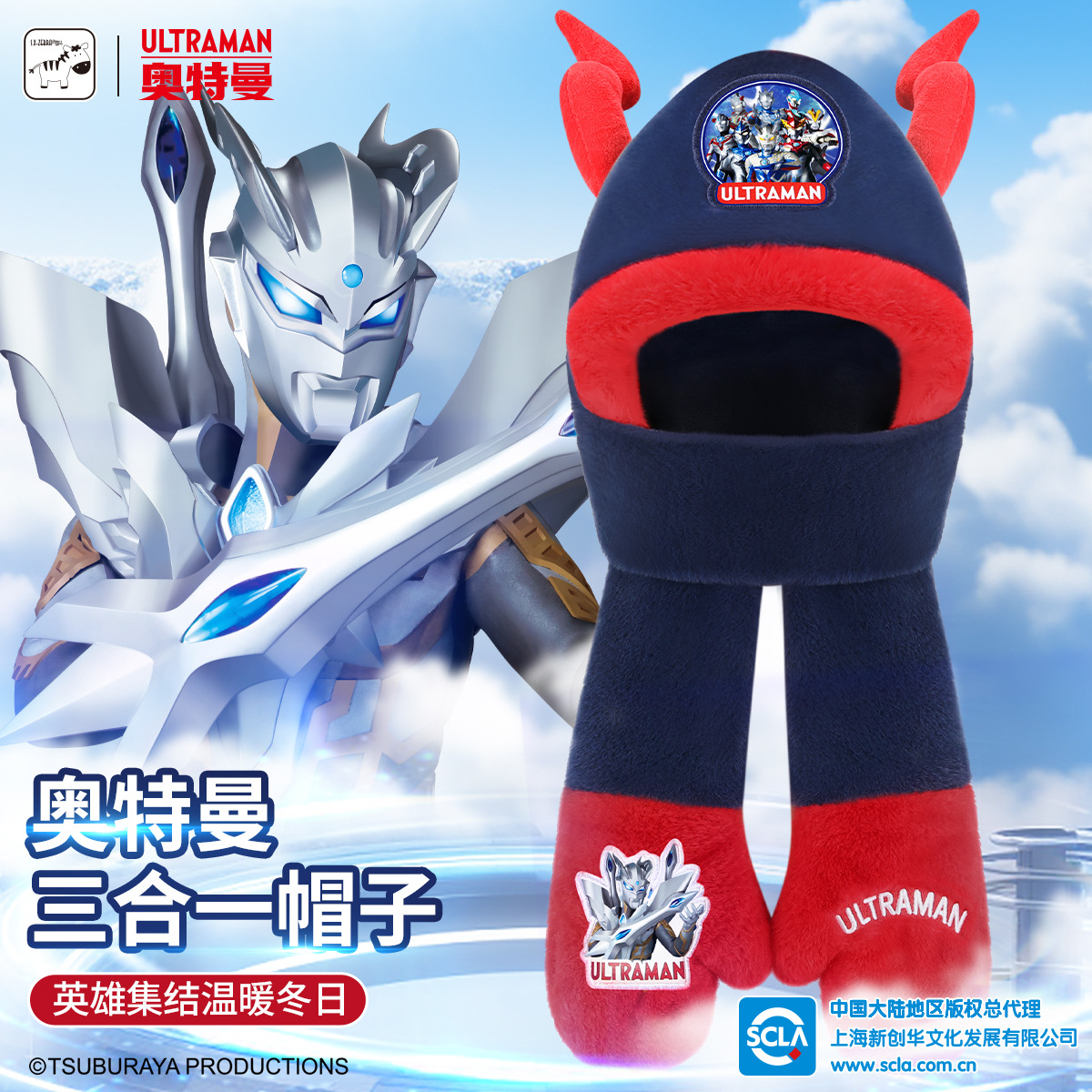 颜色 赛罗奥特曼围巾,深蓝赛罗奥特曼围巾,浅蓝赛罗奥特曼围巾,Q版赛罗奥特曼围巾