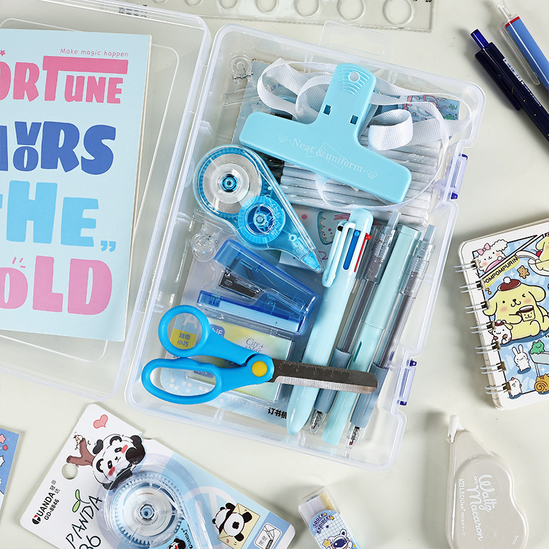 多色文具套装学生办公手账工具剪刀笔记本订书机收纳盒组合大礼包