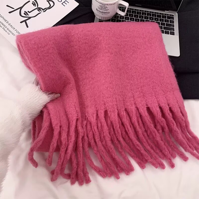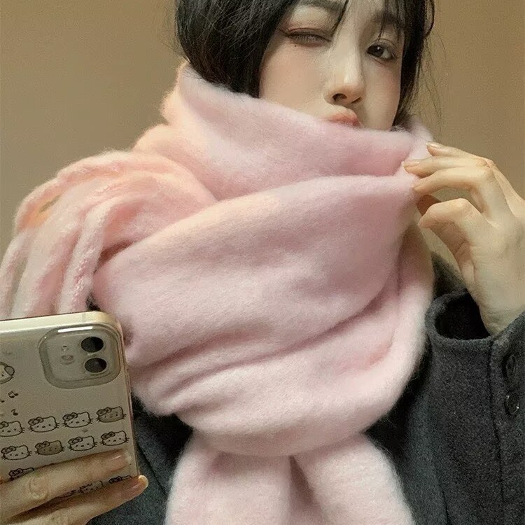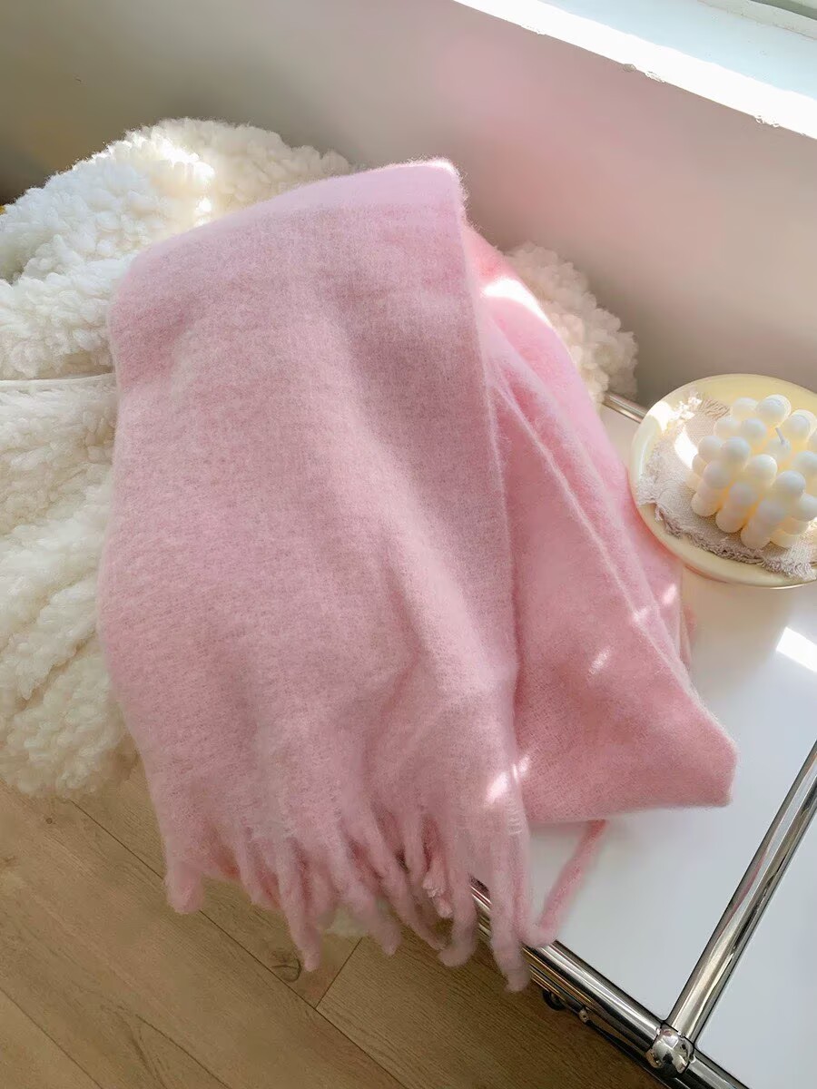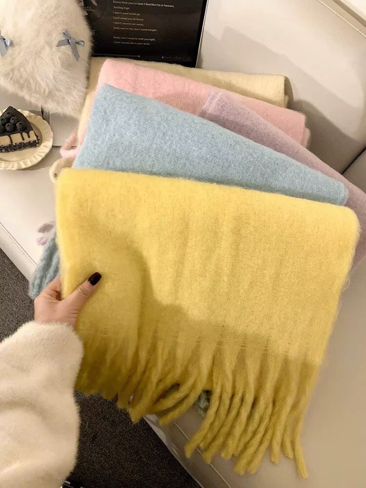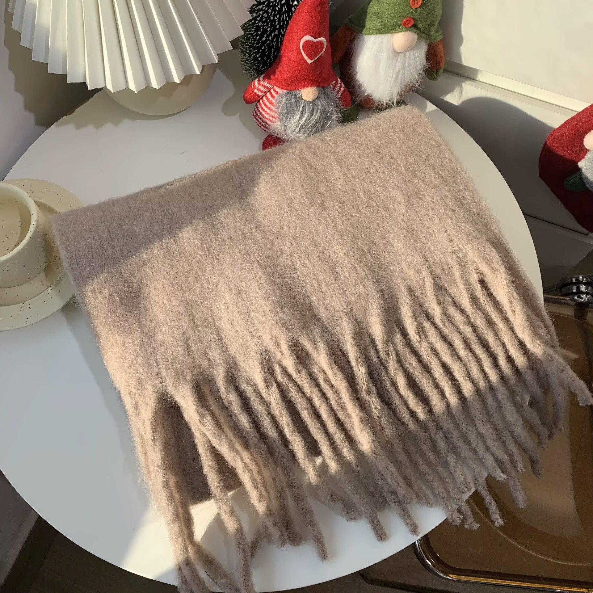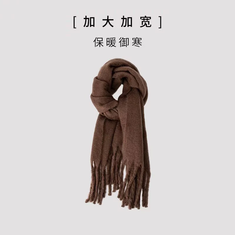 秋冬新款氛围感百搭纯色马海毛加长加厚保暖围巾女士学生韩系减龄