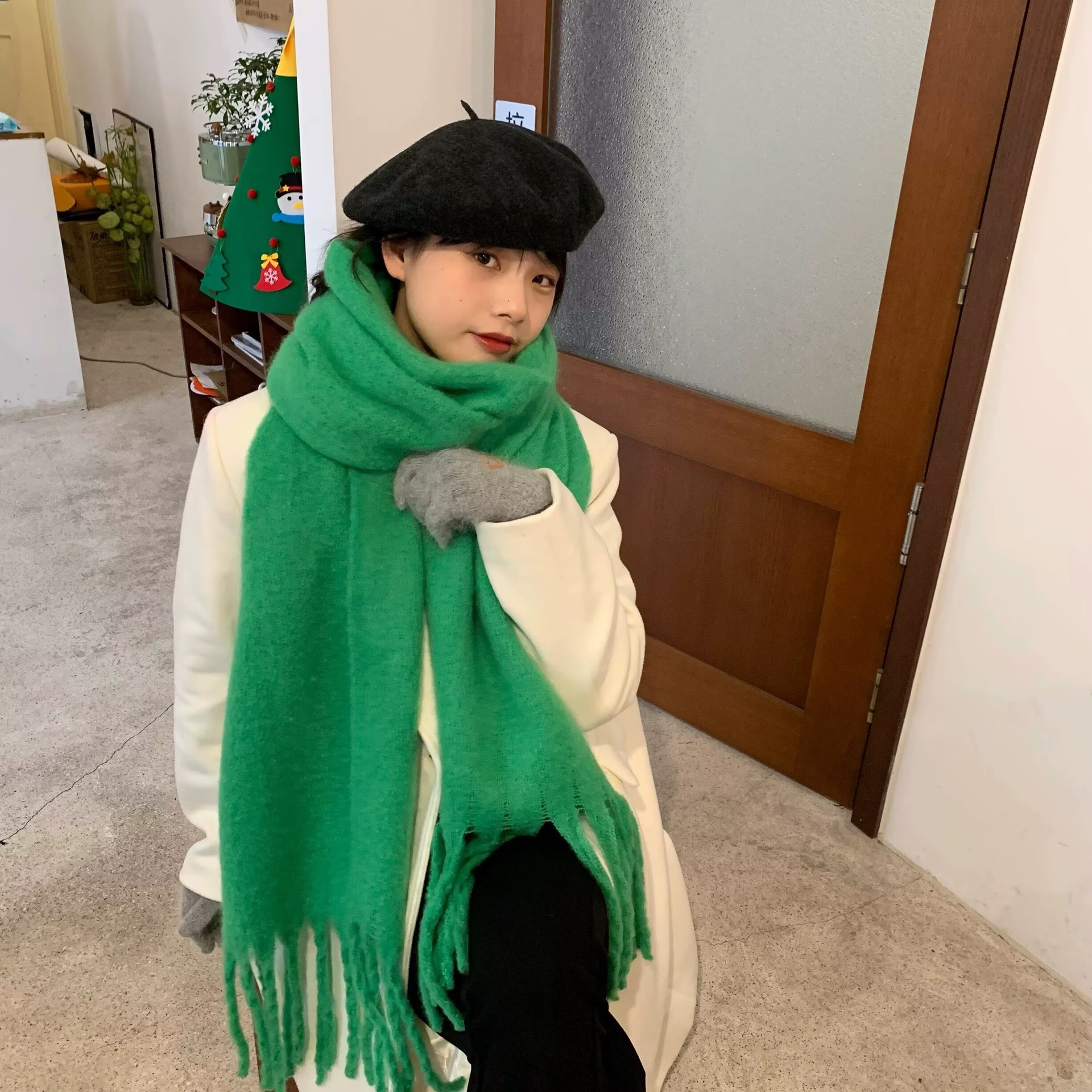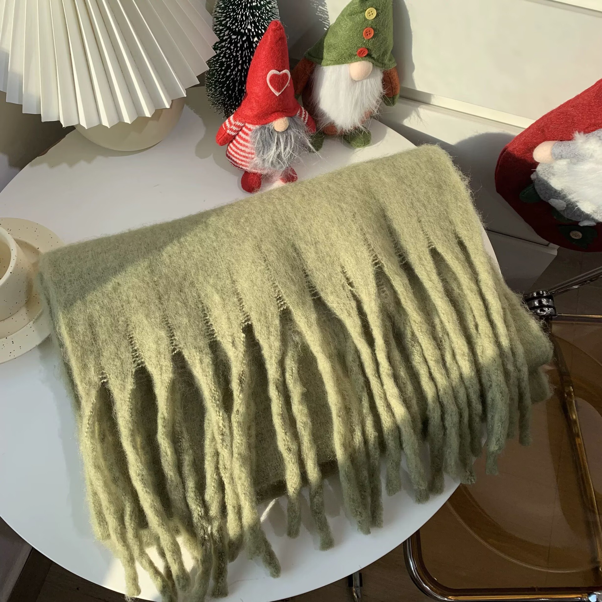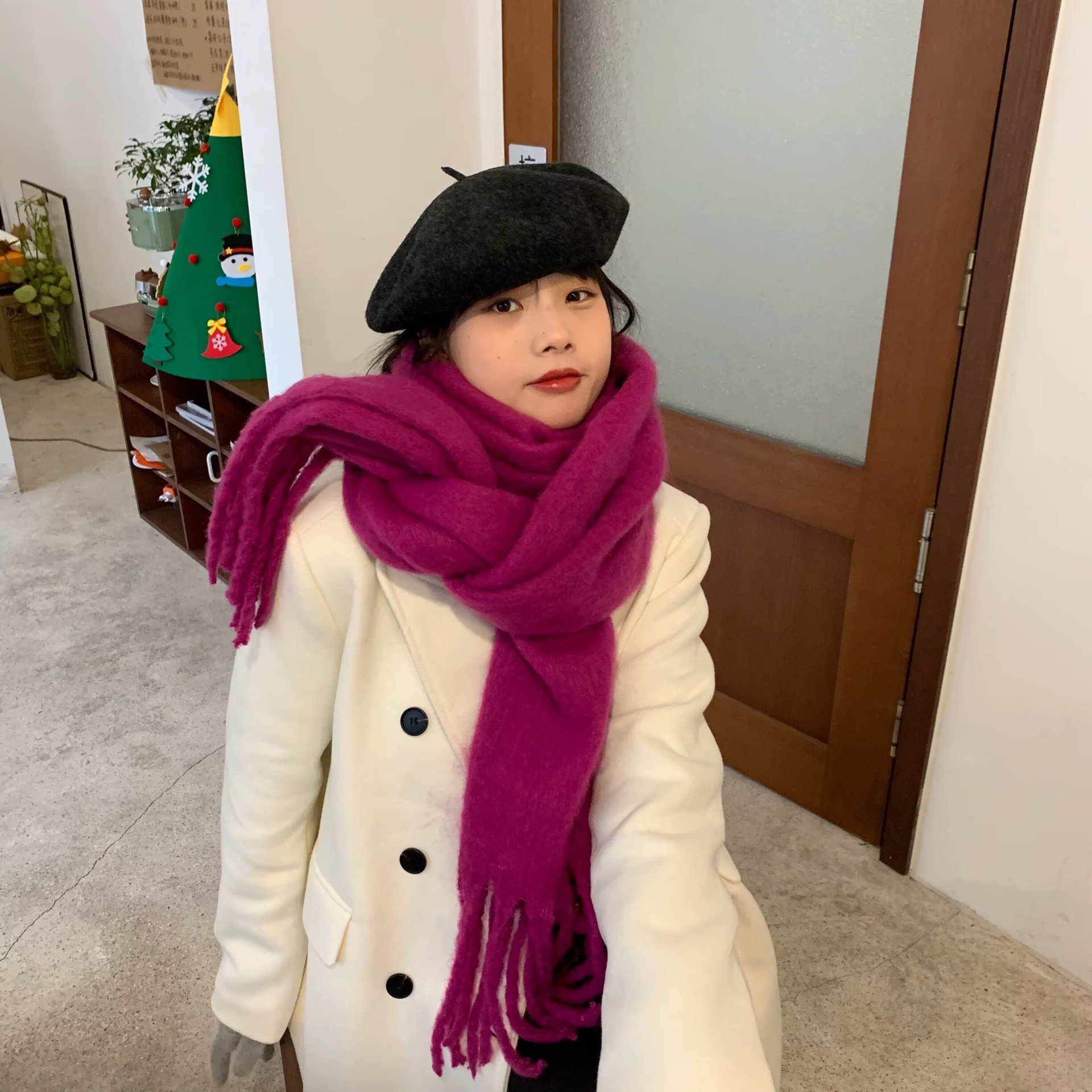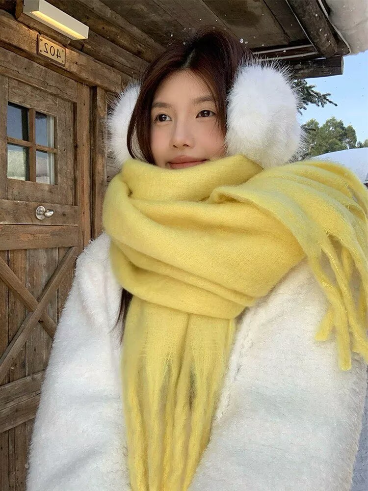 秋冬新款氛围感百搭纯色马海毛加长加厚保暖围巾女士学生韩系减龄