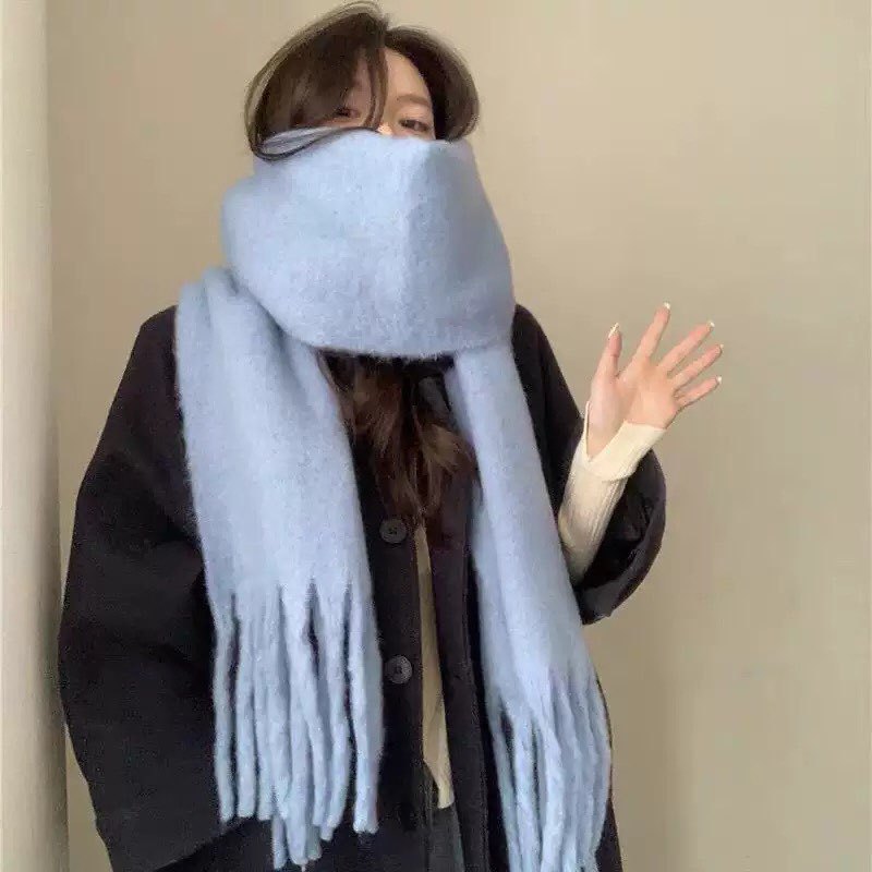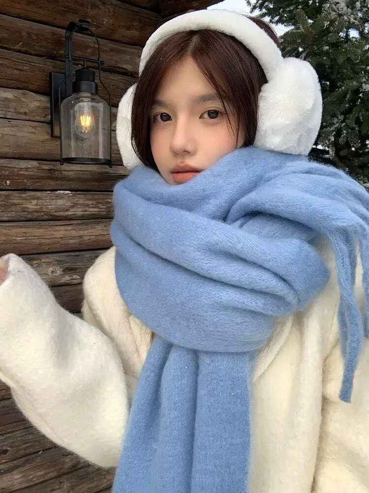 韓国風雰囲気のブルーモヘア高級ニットスカーフ、多用途レディース冬用レッドスカーフ