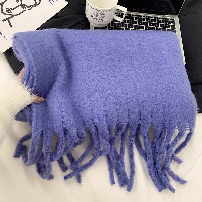 アイスランド海塩青いマフラー女性秋冬新商品馬海毛純色百合マフラー保温模造カシミヤマント