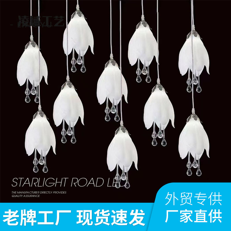 新しいスタイルのウェディング天井照明、2.1m灯の玉蘭型小型シャンデリア、結婚式会場の装飾、目を保護する装飾品