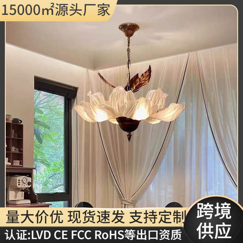 新中式花朵吊灯法式中古复古风大厅灯2025新款宋代美学花瓣客厅灯
