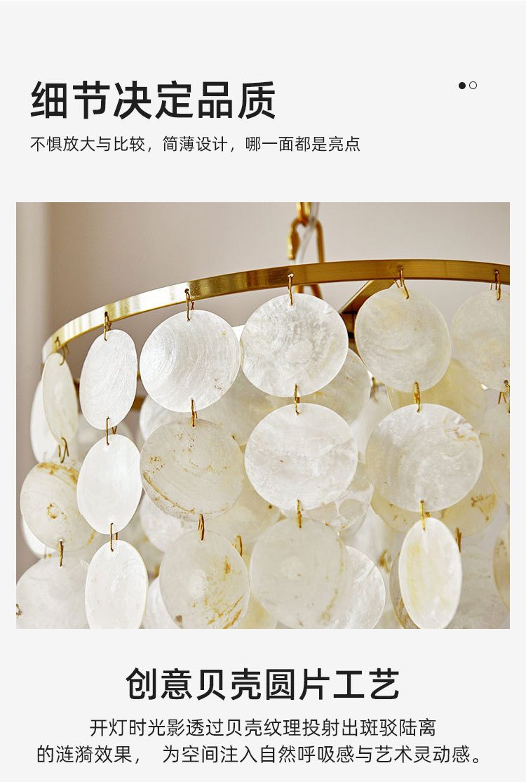 国境を越えたシャンデリア北欧現代天然貝殻風鈴クリーム風ロマンチックな寝室灯客間中山工場卸売り
