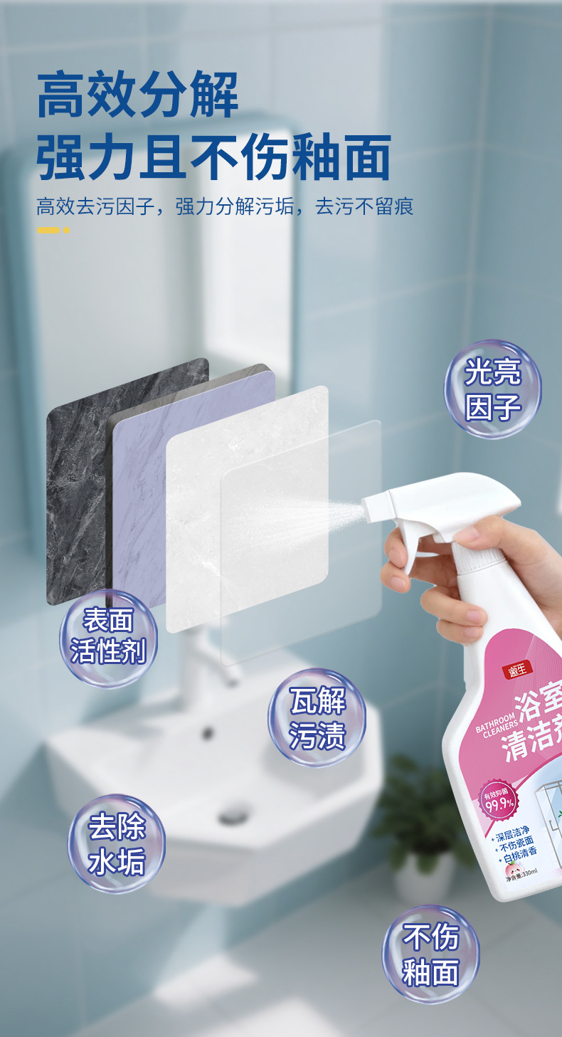 浴室清洁剂瓷砖卫生间玻璃水渍顽固水垢清洗剂洗手盆水龙头除垢剂